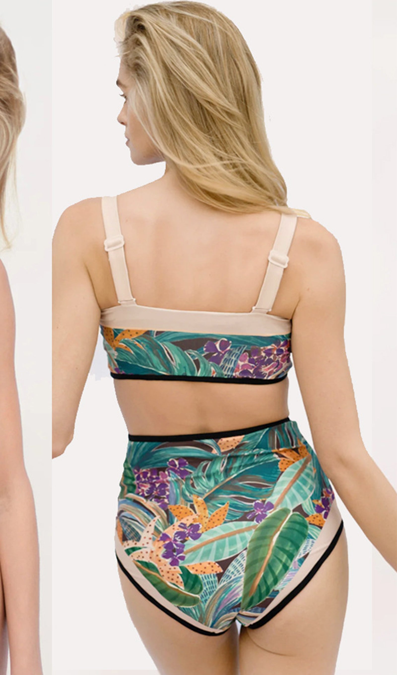 Çiçekli Yüksek Bel Bikini Seti Mayo Yeşil