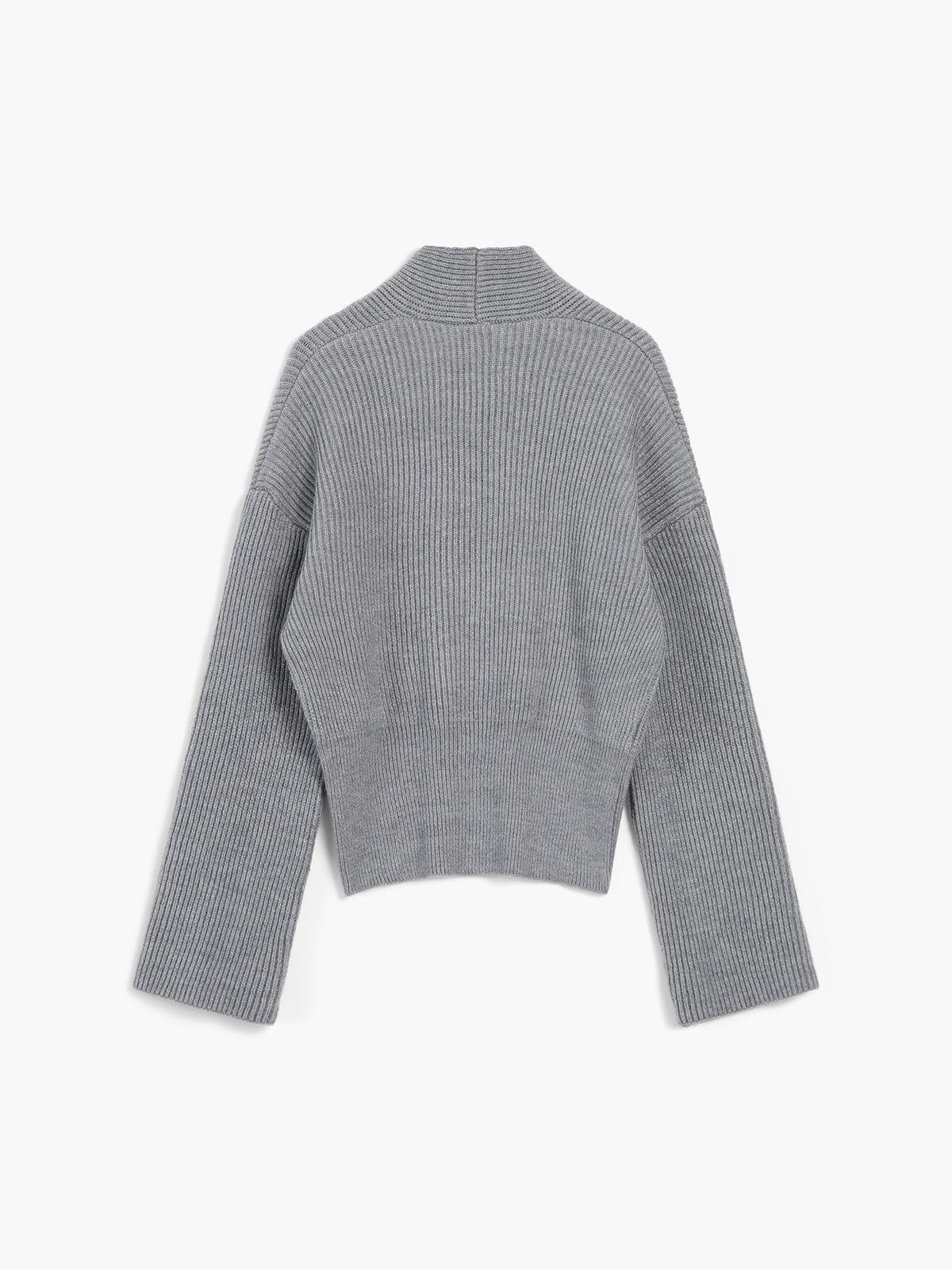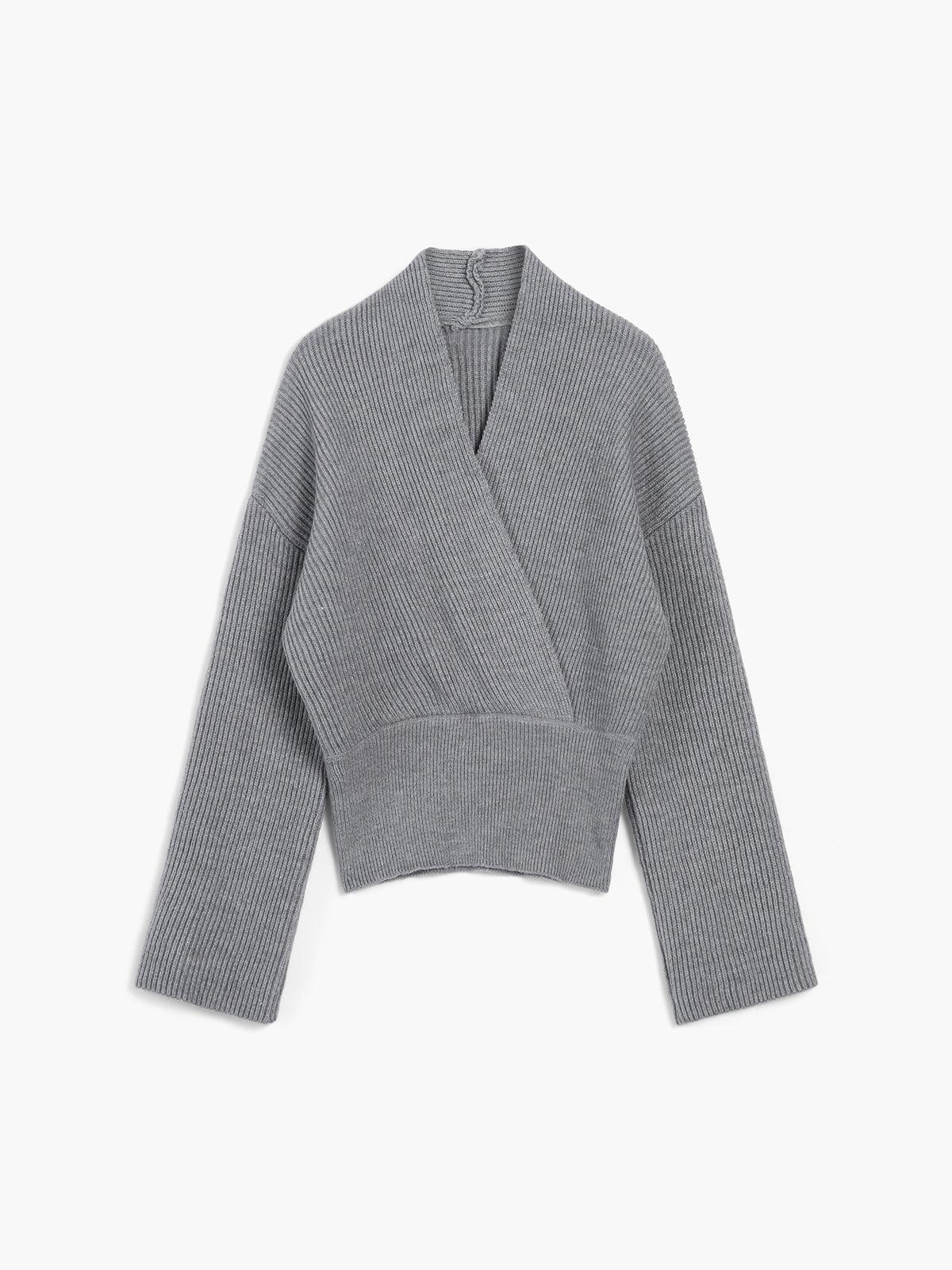 Gri Kuşak Detaylı Minimalist Triko Kazak
