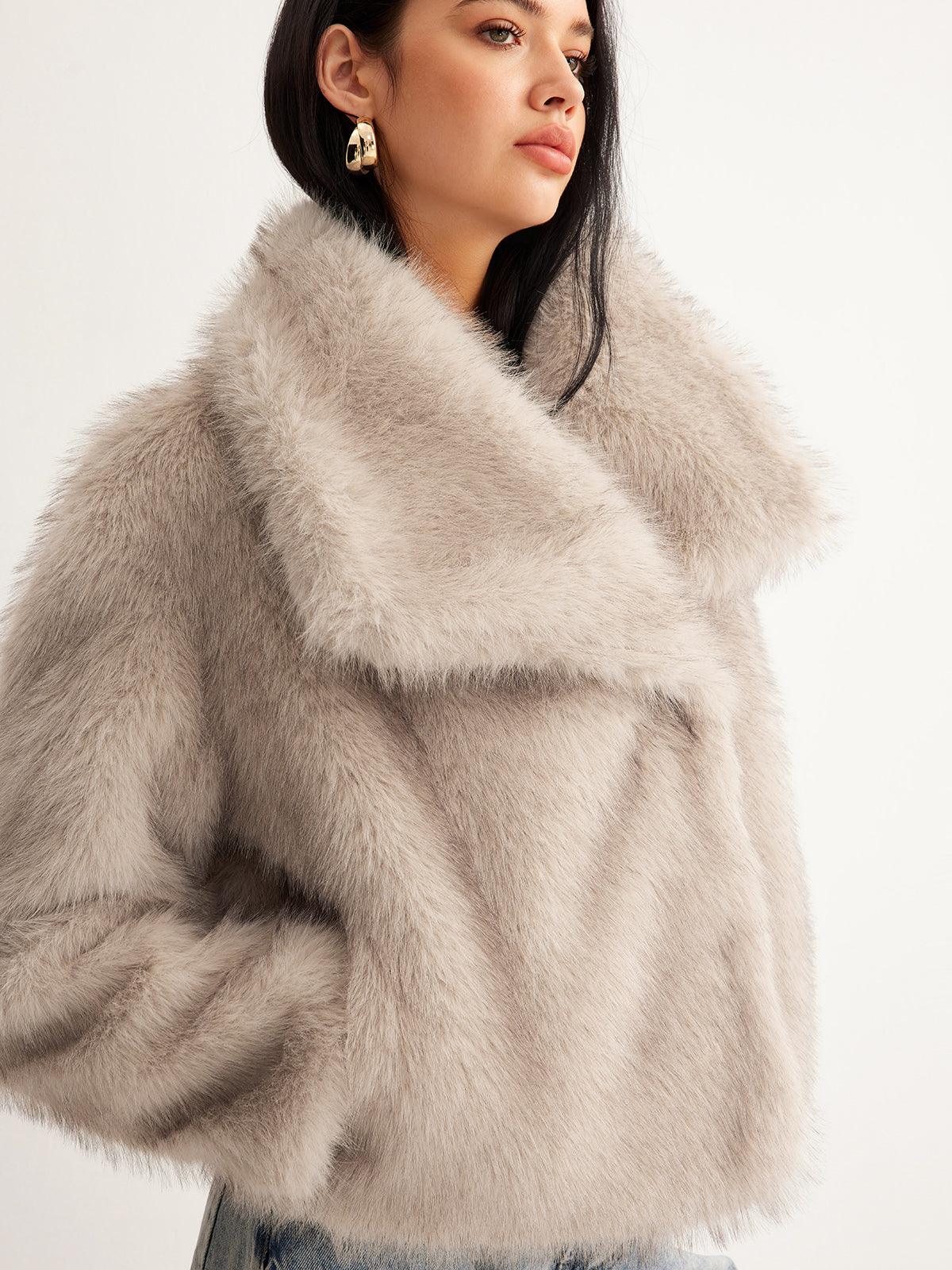 Minimalist tasarımı ve yumuşak dokusuyla dikkat çeken bu gri kürk ceket, soğuk havalarda stilinize zarif bir dokunuş katıyor. Hem casual hem de şık kombinler için vazgeçilmez bir parça!