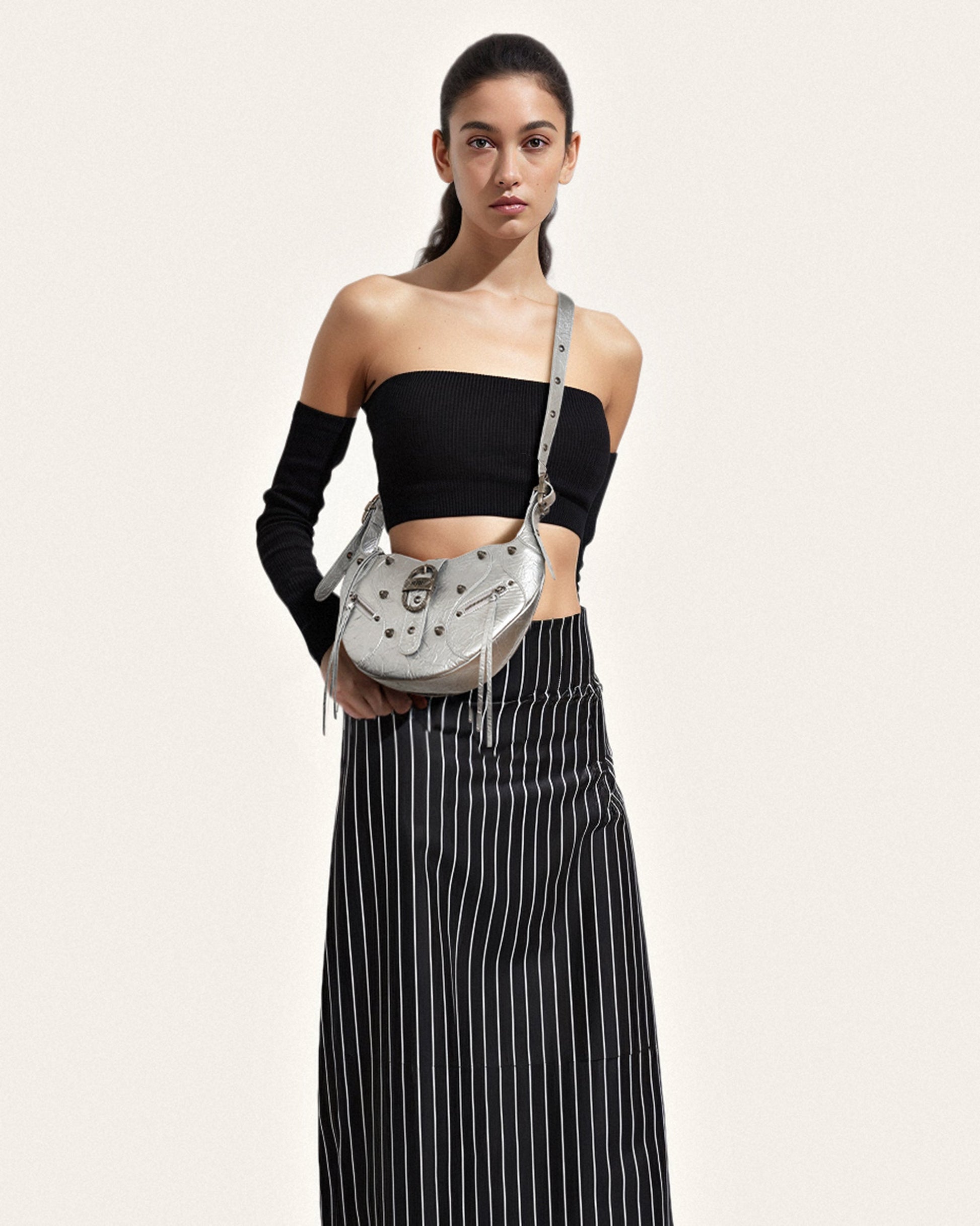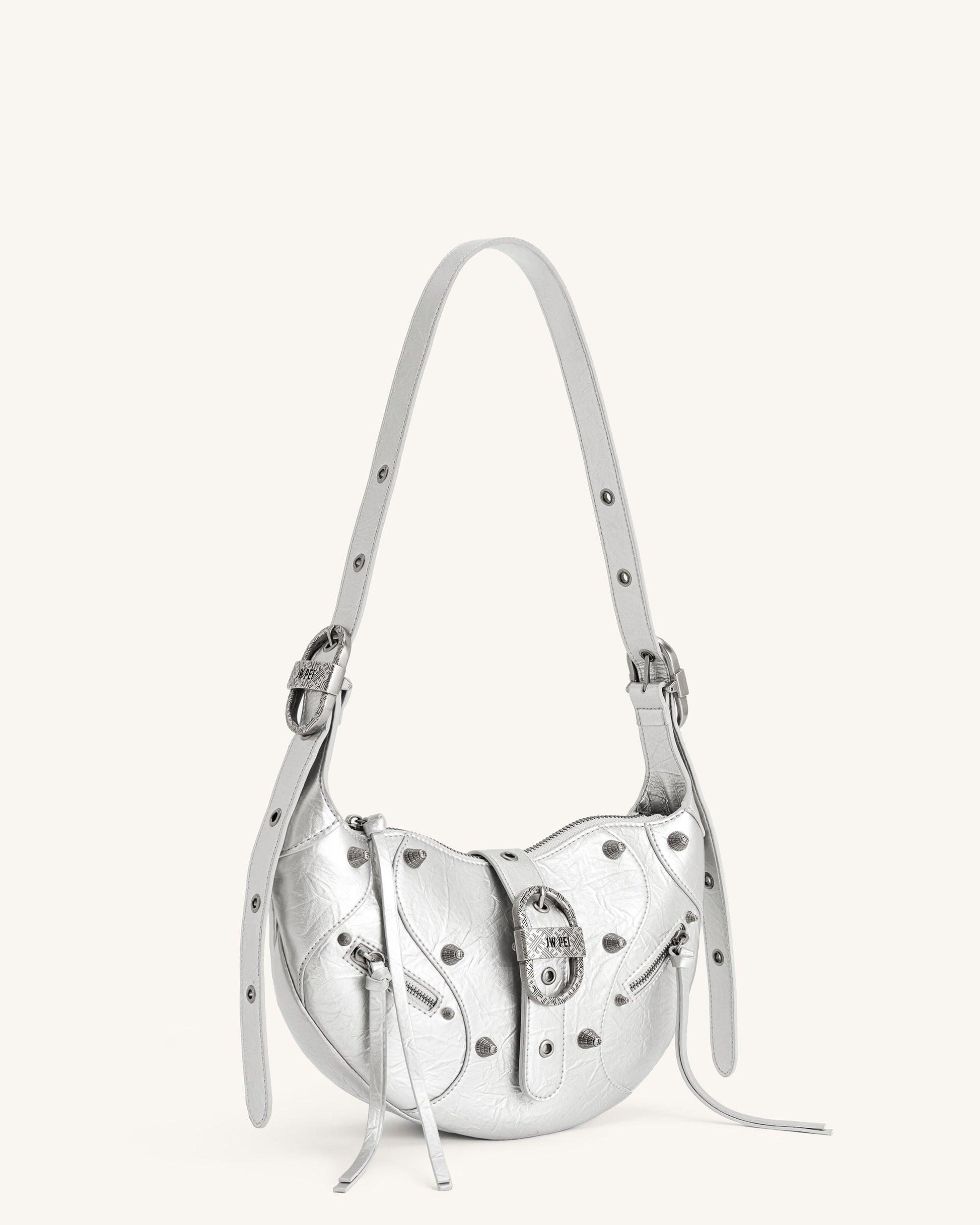 Tessa Metalik Pileli Omuz Çantası Gümüş