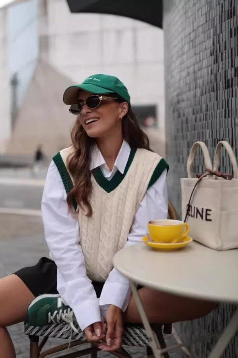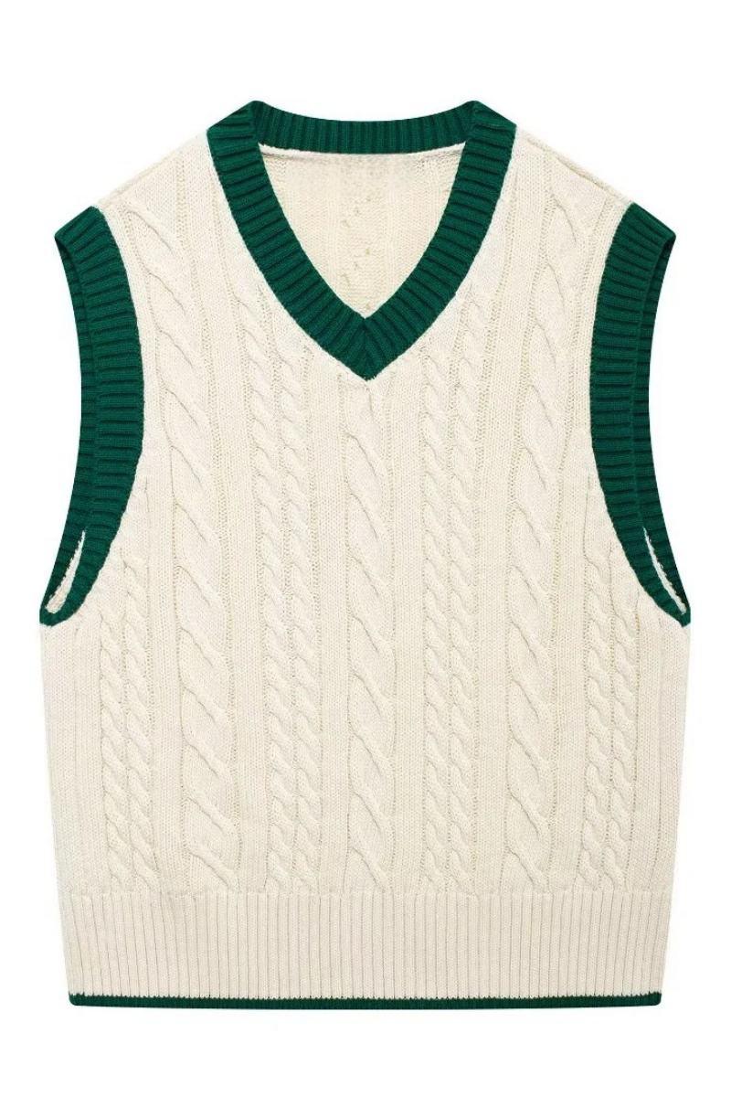 Bu orta kalınlıkta örgü yelek, eğlenceli kontrast renk tasarımıyla büyüleyici bir örgü desenine sahiptir. Gündelik rahatlığı canlı ve sevimli bir estetikle birleştiren bu model, rahat ve şık bir görünüm için gömleklerin veya balıkçı yaka kazakların üzerine giyilmek için mükemmeldir.