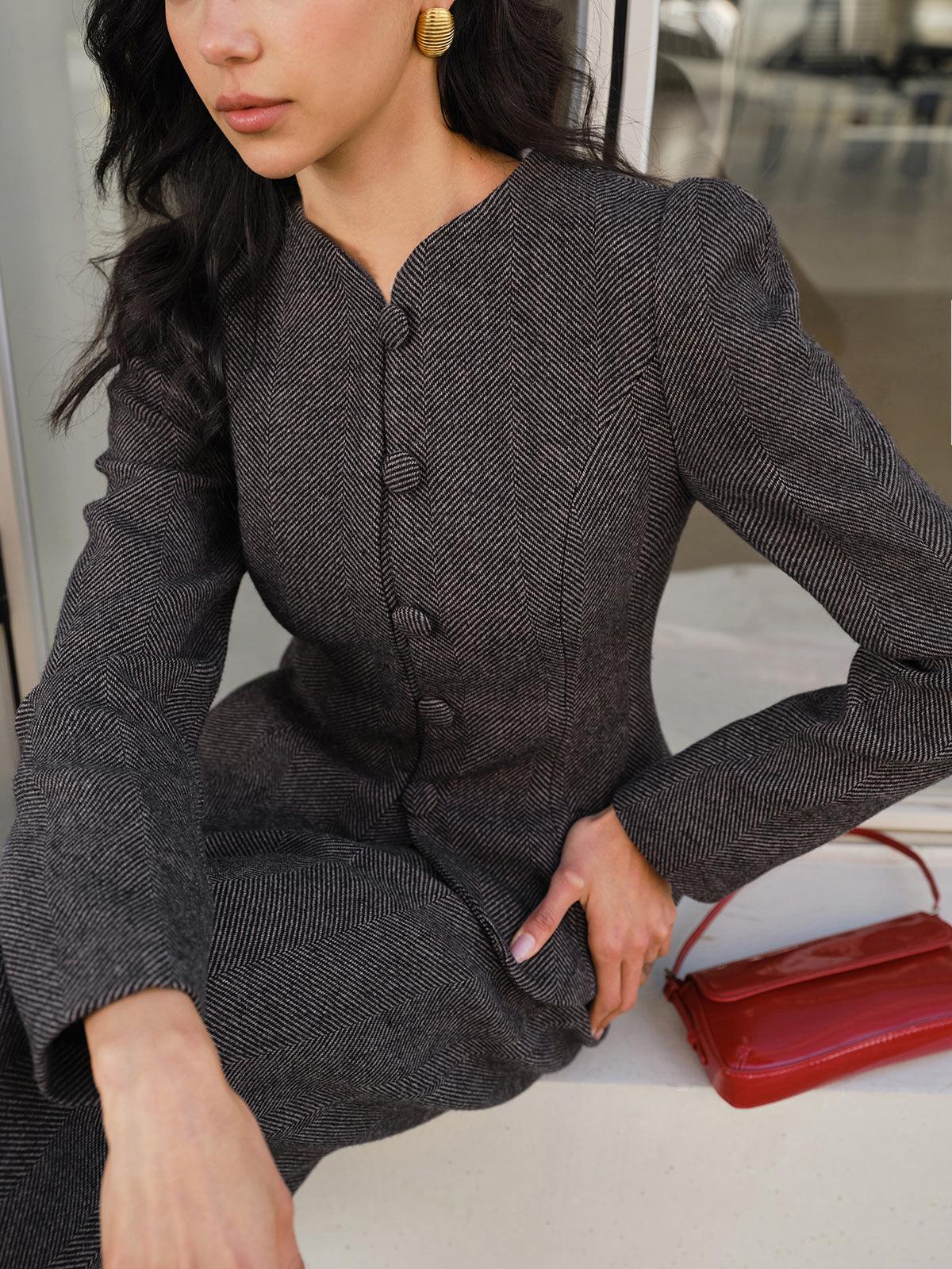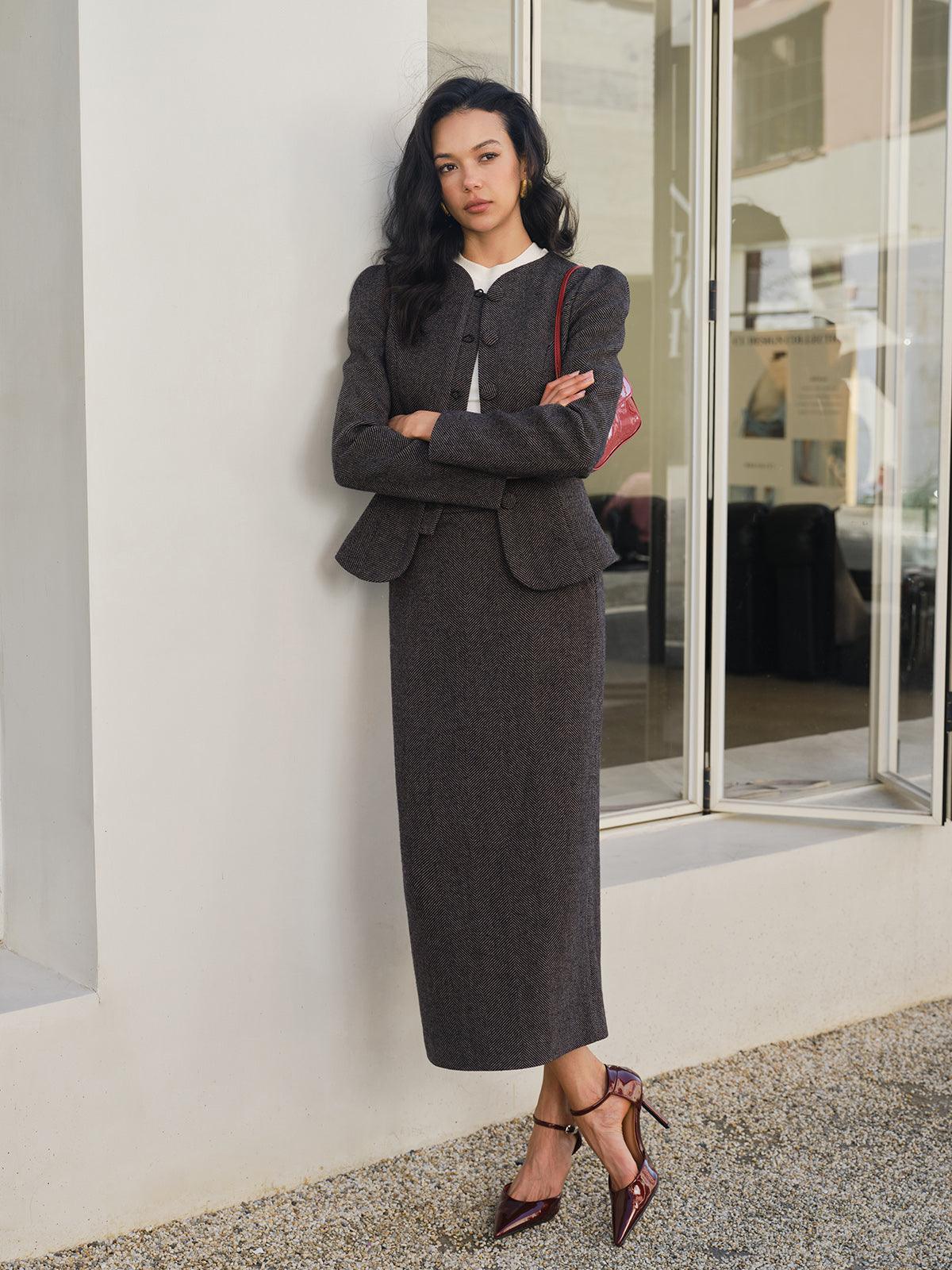 Şıklığı ve zarafeti bir araya getiren kahverengi balık sırtı desenli takım ceket, özel günler ve iş kombinleri için sofistike bir tercih. Zamansız bir stilin anahtarı!