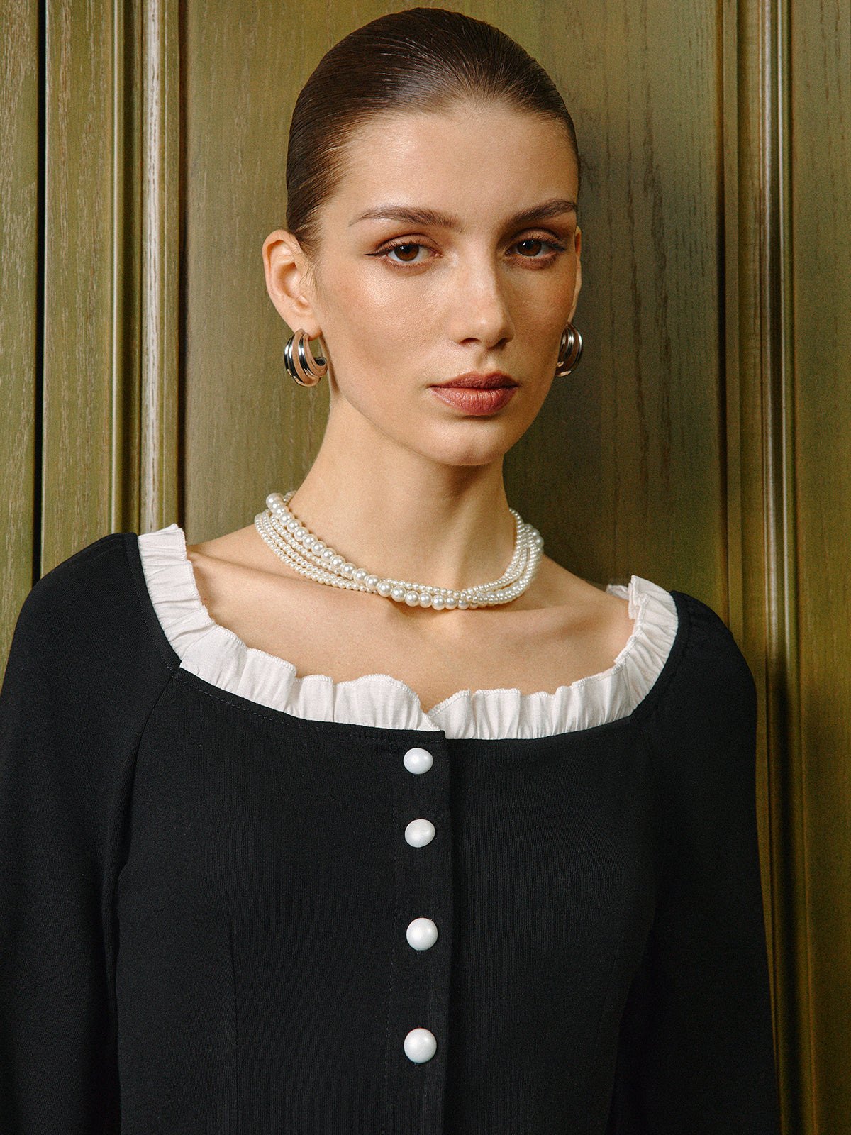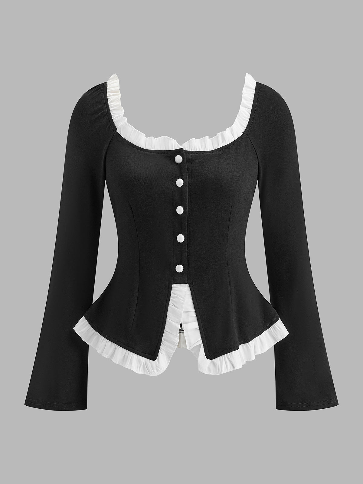 Kare Yaka Kontrast Marul Kesimli Yırtmaçlı Bluz
