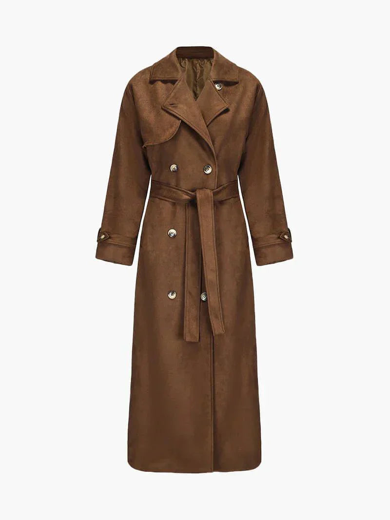 Süet trençkot – zamansız şıklığı modern bir yorumla sunan uzun form.