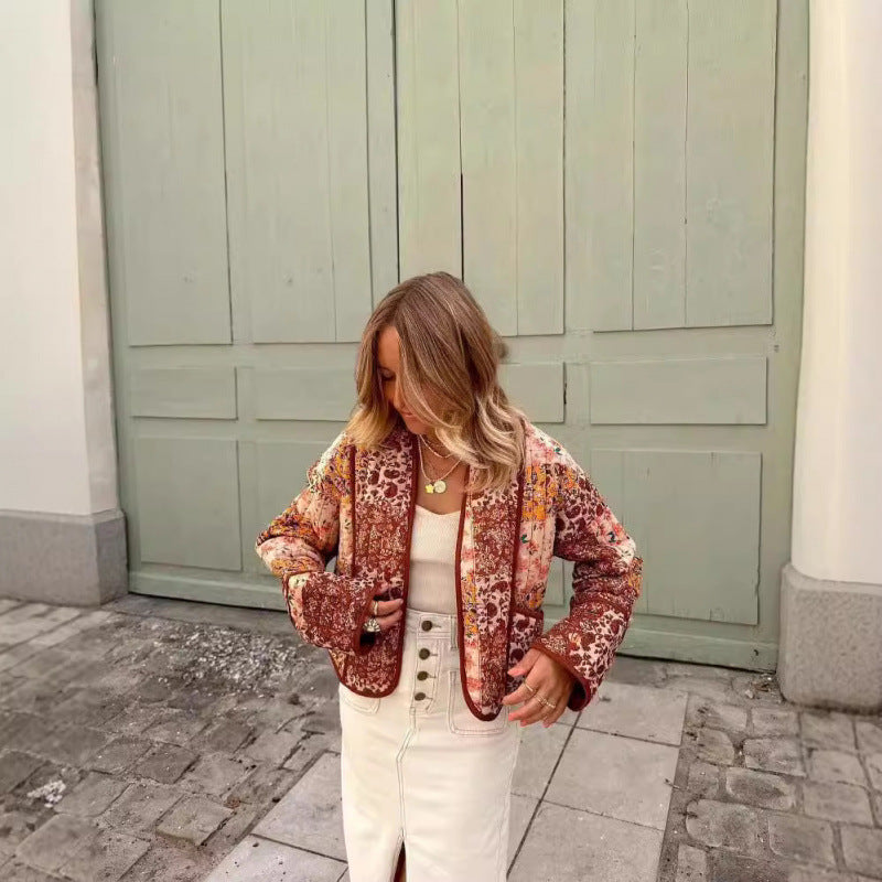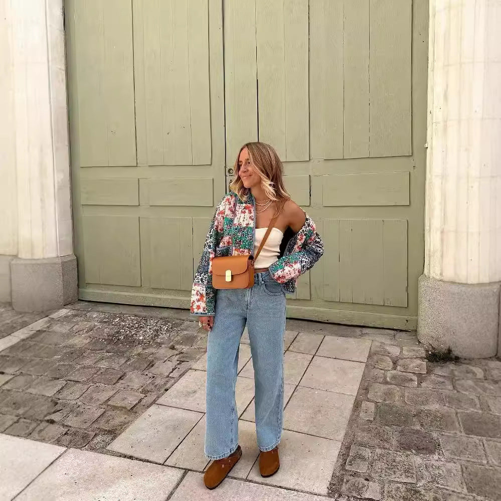 Bohem esintilerini modern çizgilerle buluşturan bu desenli bomber ceket, özgün dokusu ve canlı renkleriyle dikkat çekiyor. Özel desen çalışması, kombininize sanatsal bir hava katarken kısa ve rahat kalıbı sayesinde gün boyu konfor sunuyor. Bahar ve yaz akşamlarında stilinizi tamamlayacak özgün bir parça.