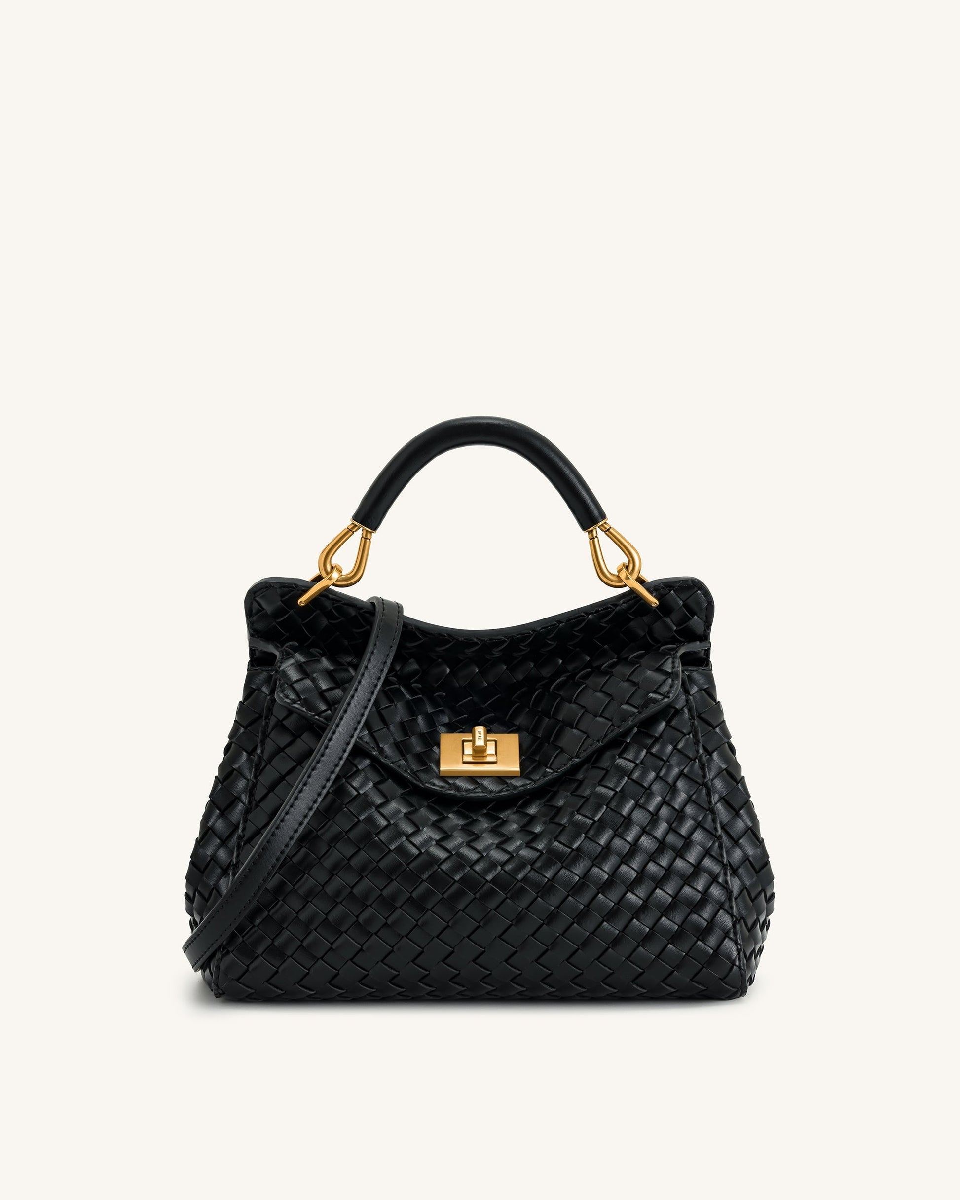Lucia Klasik Üst Saplı Dokuma Çanta Siyah
