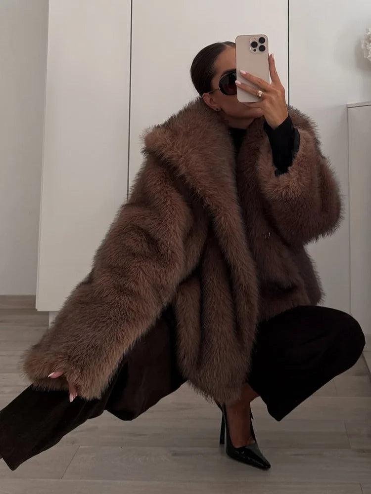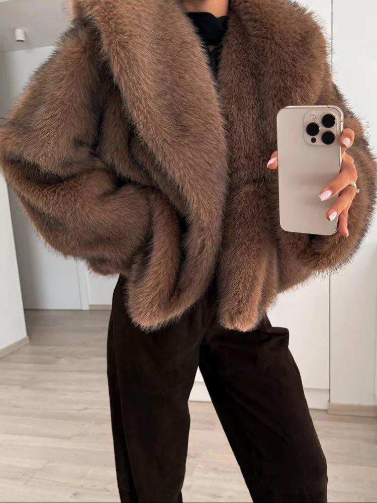 Bu şık suni kürk ceket ile kendinizi lüksle sarın. Pelüş, dokulu bir tasarıma ve sofistike bir siluete sahip olan bu ceket, cesur bir stil ifadesi oluştururken rahat kalmak için mükemmel bir parçadır. Zarif akşamlar için mükemmeldir veya herhangi bir kıyafete ihtişamlı bir dokunuş katar.