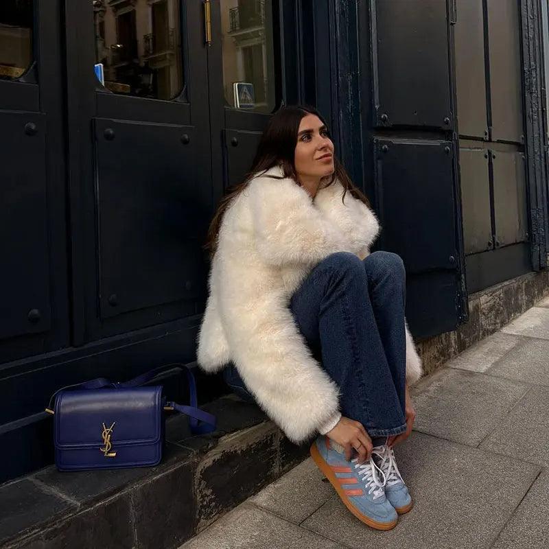 Bu lüks suni kürk kısa mont ile sıcak ve şık kalın. Pelüş, yumuşak dokusu ve zamansız siluetiyle her kıyafete şıklık katmak için mükemmeldir. Akşam etkinlikleri veya kış gezileri için ideal olan bu palto, hem konfor hem de sofistike bir görünüm sağlar. Şık ve rahat bir görünüm için sahip olunması gereken bir parça.