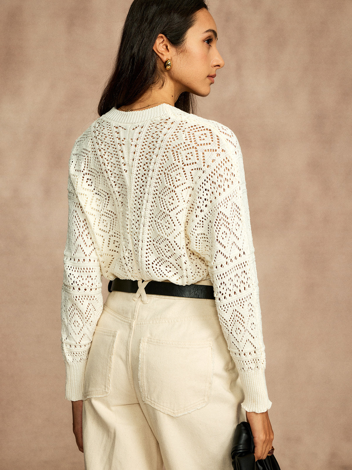 Marul Süslemeli İçi Boş Düğmeli Hırka