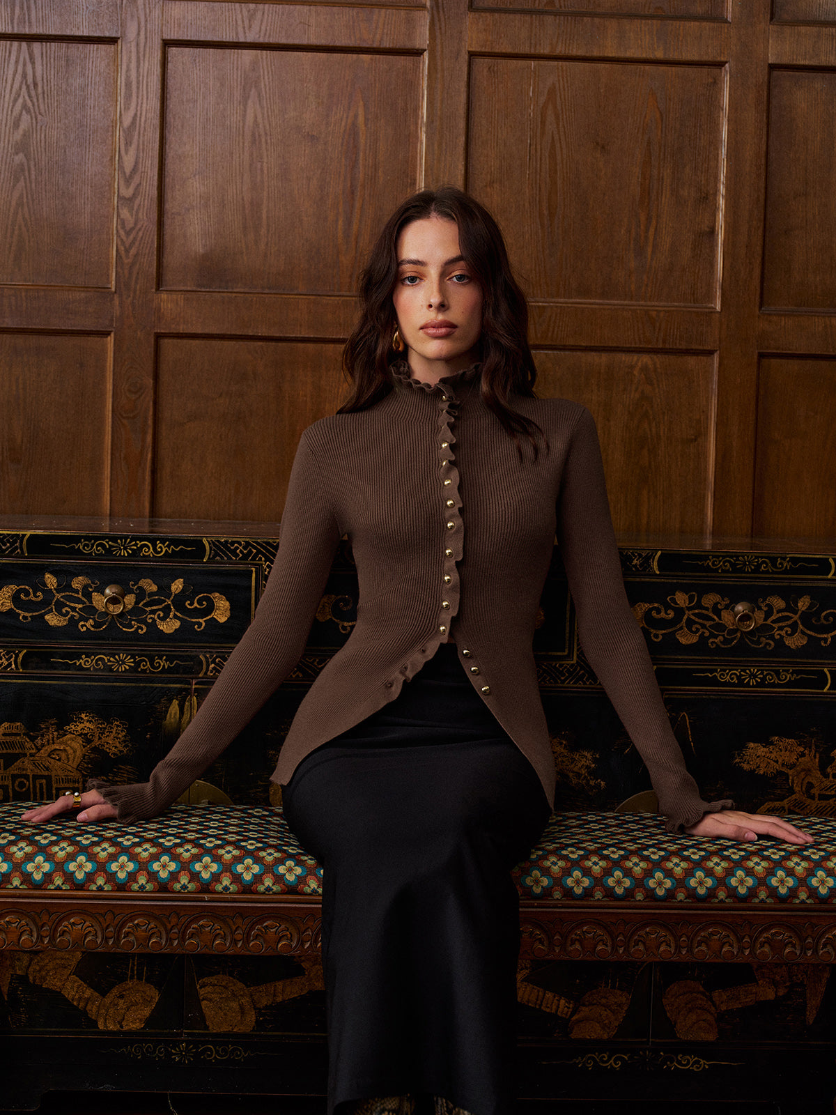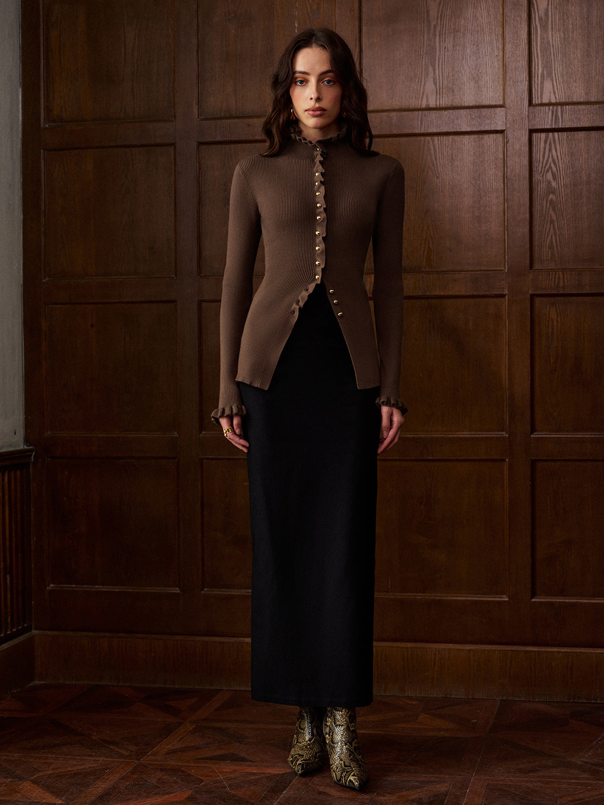Marul Süslemeli Metal Düğmeli Yırtmaçlı Hırka