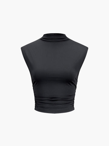Minimal Siyah Yüksek Yaka Crop Bluz