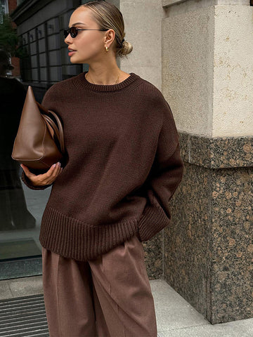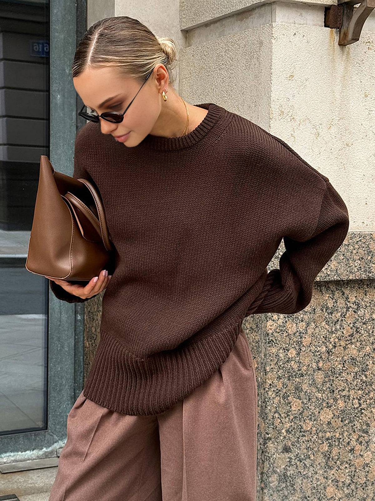 Minimal ve şık tasarımıyla öne çıkan bu koyu kahve oversize triko kazak, hem günlük kombinlerde hem de ofis şıklığında kullanılabilecek zamansız bir parça. Rahat kesimi ve yumuşak dokusuyla soğuk günlerde stil sahibi bir görünüm sunuyor.