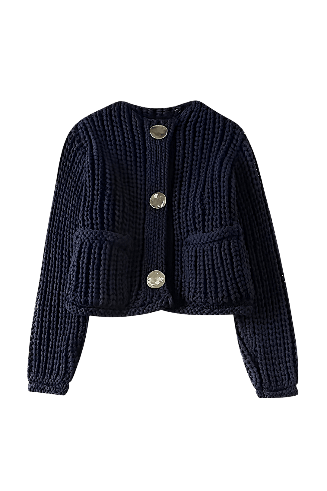 Gardırobunuzu, klasik tek sıra yuvarlak düğmeli ve çift ön cepli, düz renkli kısa hırkamızla yükseltin. Bu kalın örgü kazak, rahat kesimi ve çok yönlü tasarımıyla hem stil hem de işlevsellik sunuyor.