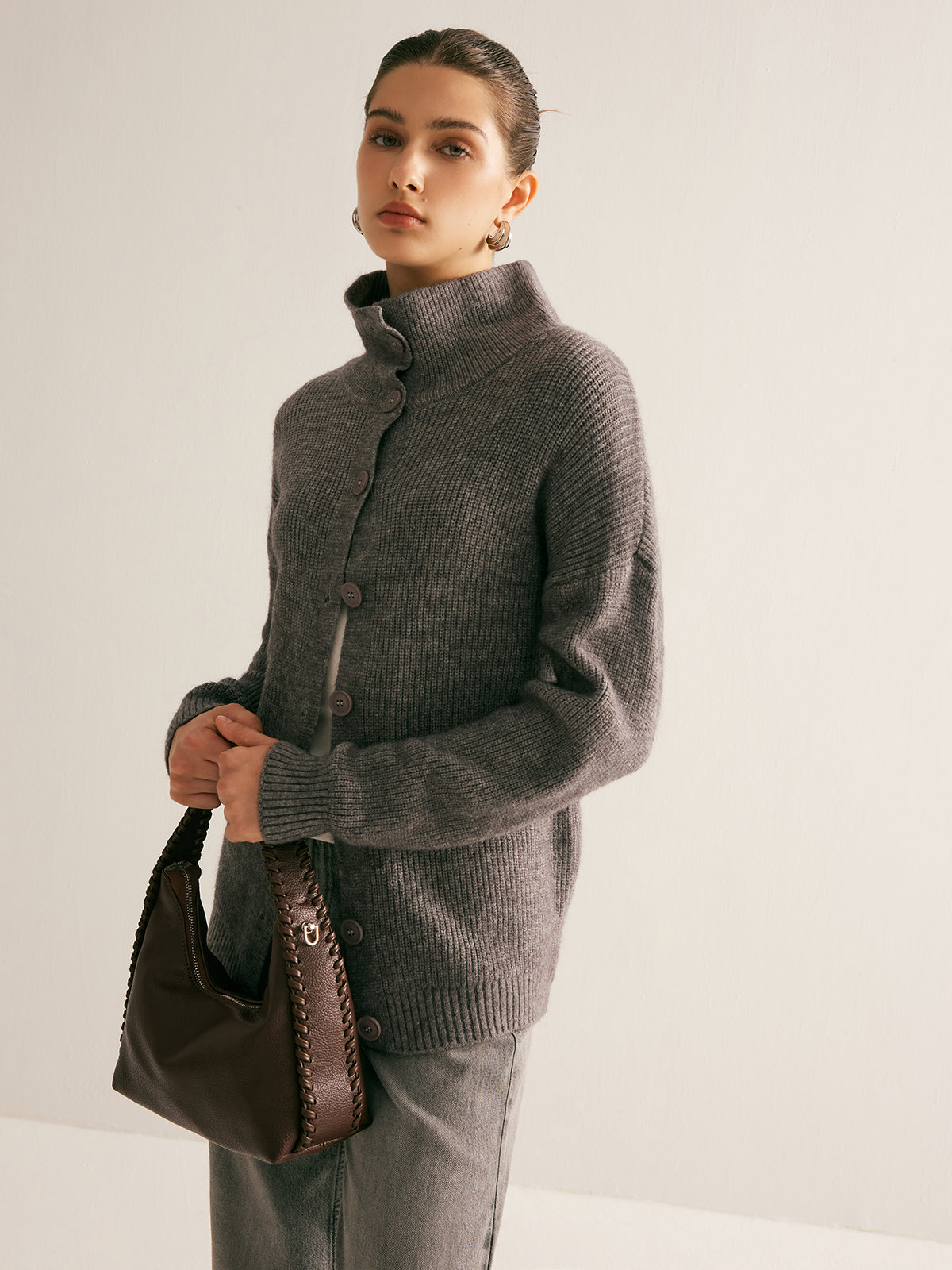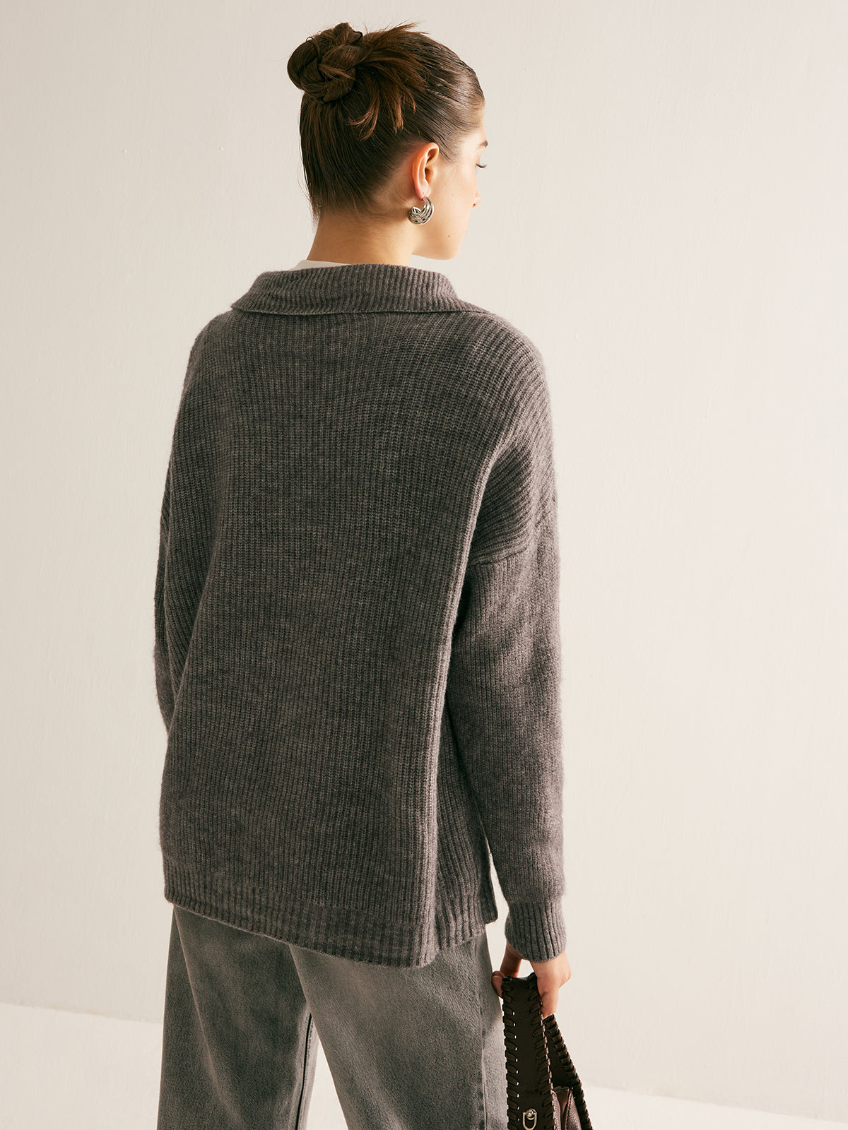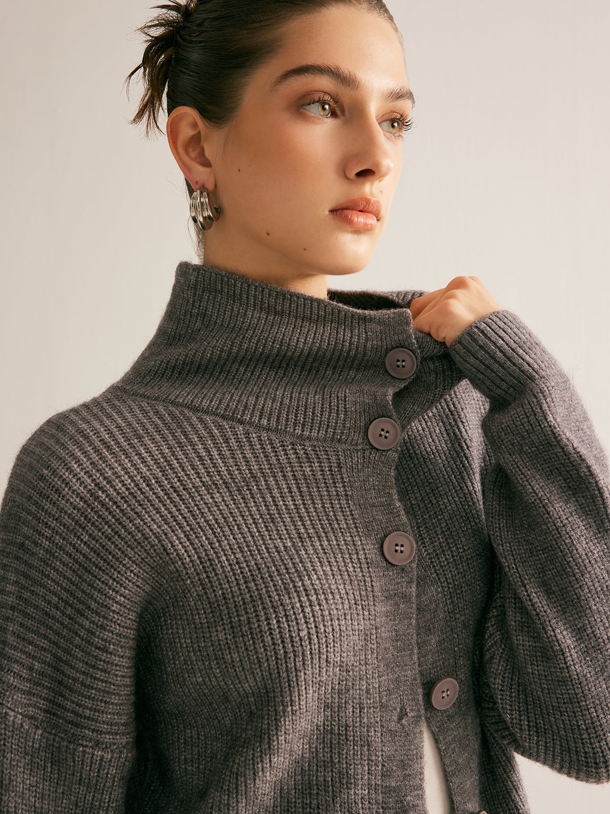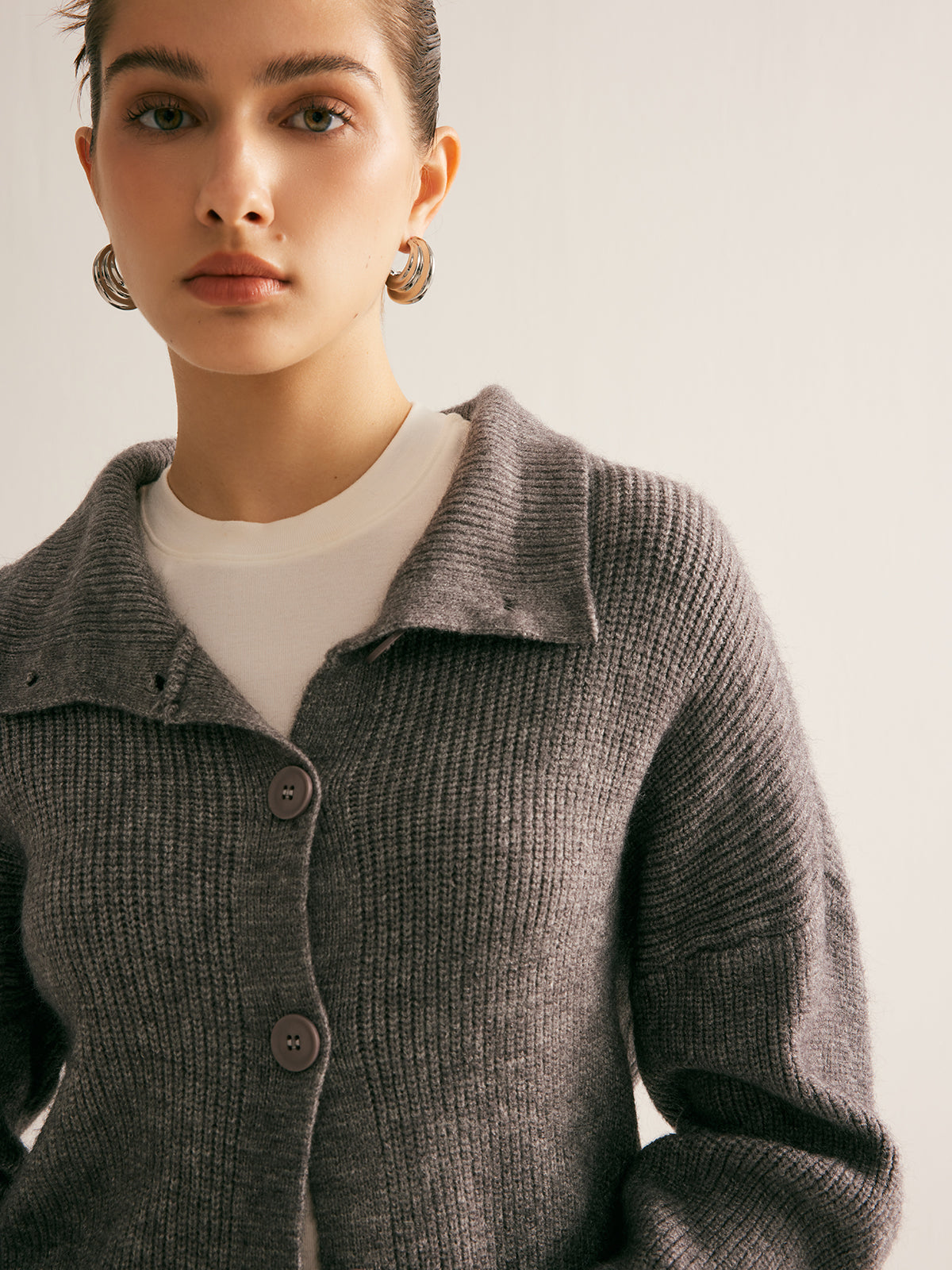 Nervürlü Düğmeli Yaka Hırka