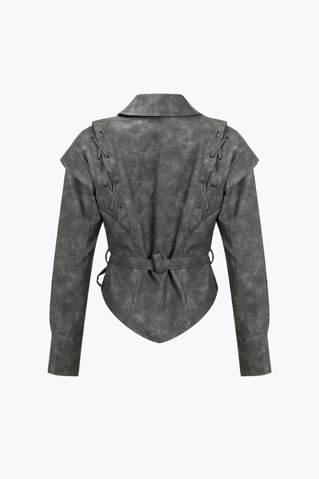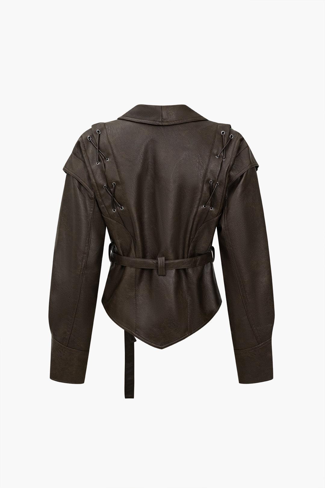 Nostaljik Elegans Ceket, geçmişin zarafetini modern tasarım unsurlarıyla buluşturan sofistike bir parçadır. Kaliteli deri dokusu, detaylı işçiliği ve beldeki kuşak detayıyla, klasik tarzın asaletini taşırken modern çizgileriyle fark yaratır. Geniş yakası ve asimetrik kesimiyle zamansız bir şıklık sunar. Omuz ve koldaki bağcık detayları, cekete modern ve özgün bir hava kazandırır.