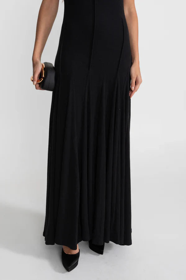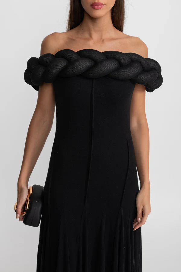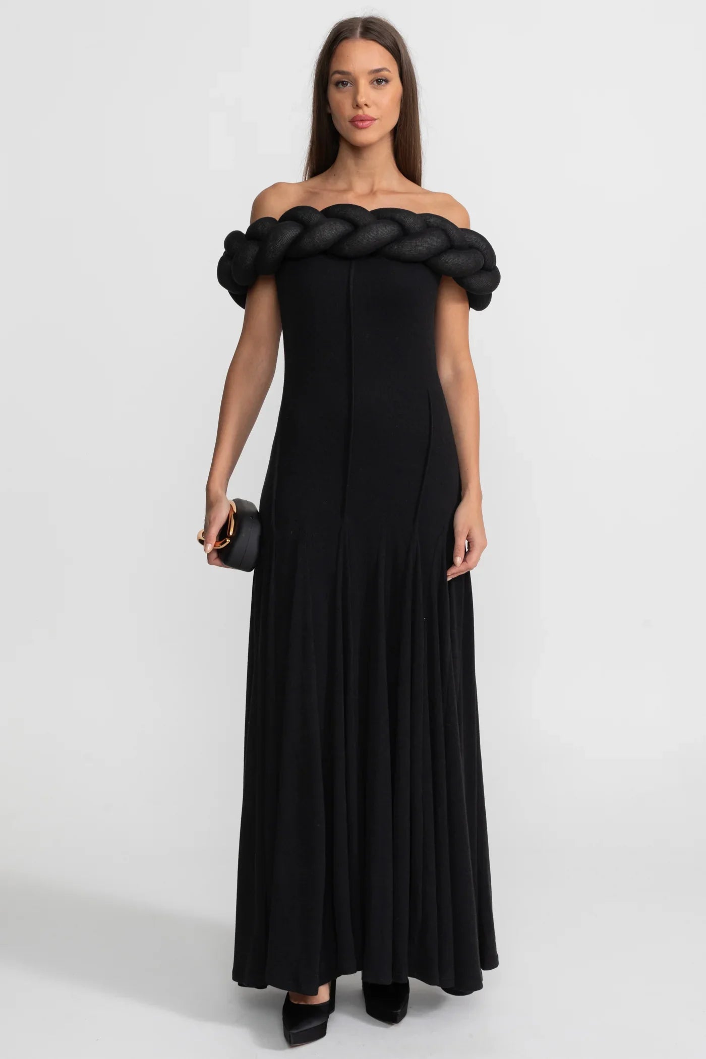 Omuzları Açık Örgülü Yakalı Maxi Elbise