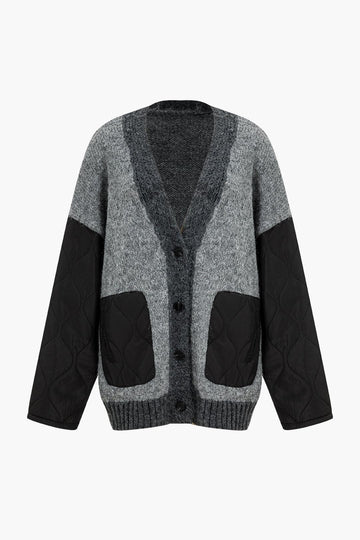Quilted Harmony Patchwork Hırka, modern tasarım detaylarını konforlu bir kullanım sunan dokularla birleştiriyor.