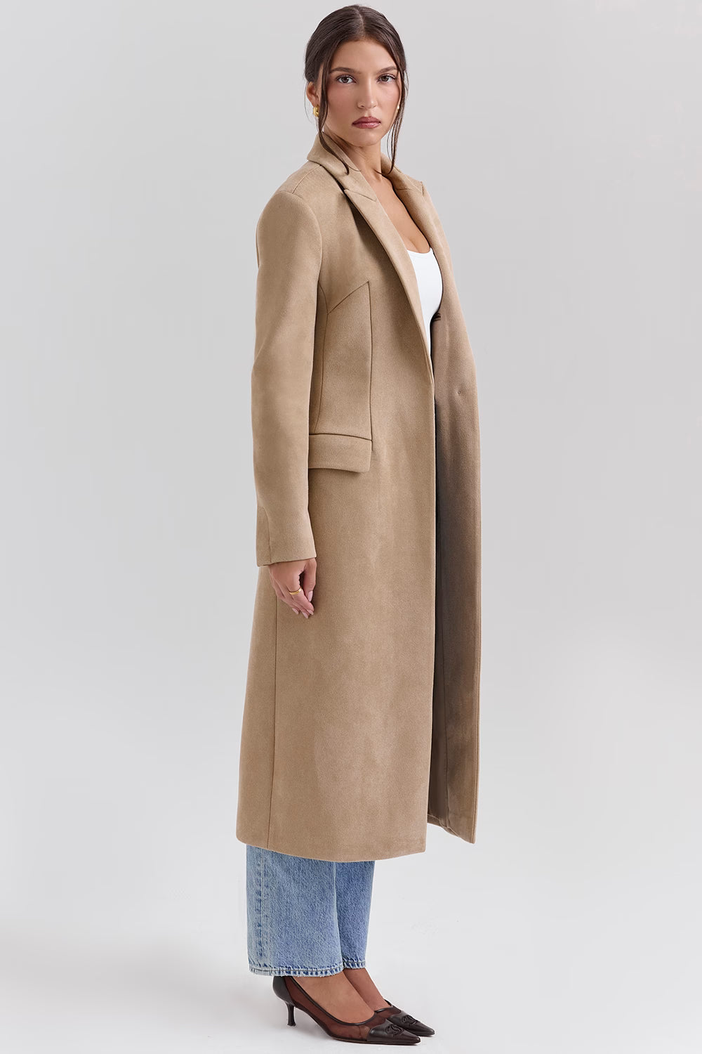 Bu camel uzun kaban, zamansız tonuyla her kombine uyum sağlayan şık ve modern bir parça. Düz kesimi ve zarif duruşuyla günlük şehir stilinden özel davetlere kadar geniş bir kullanım alanı sunar. Kot pantolon, elbise ya da ofis kombinleriyle kolayca tamamlanabilir.