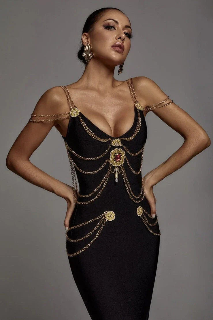 Setlla Metal Süslü V Yaka Uzun Elbise