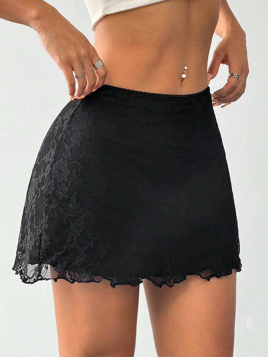 Kontrast Dantelli Yazlık Mini Etek