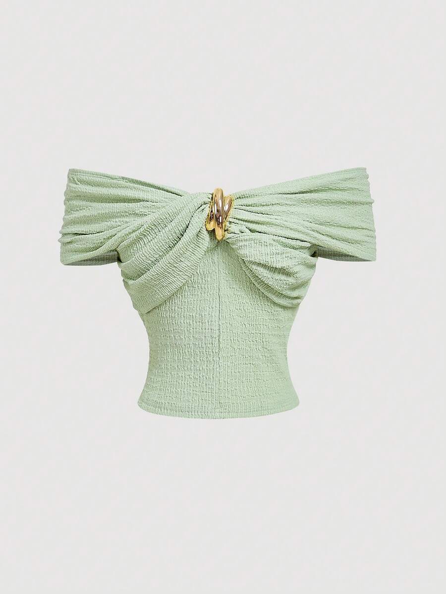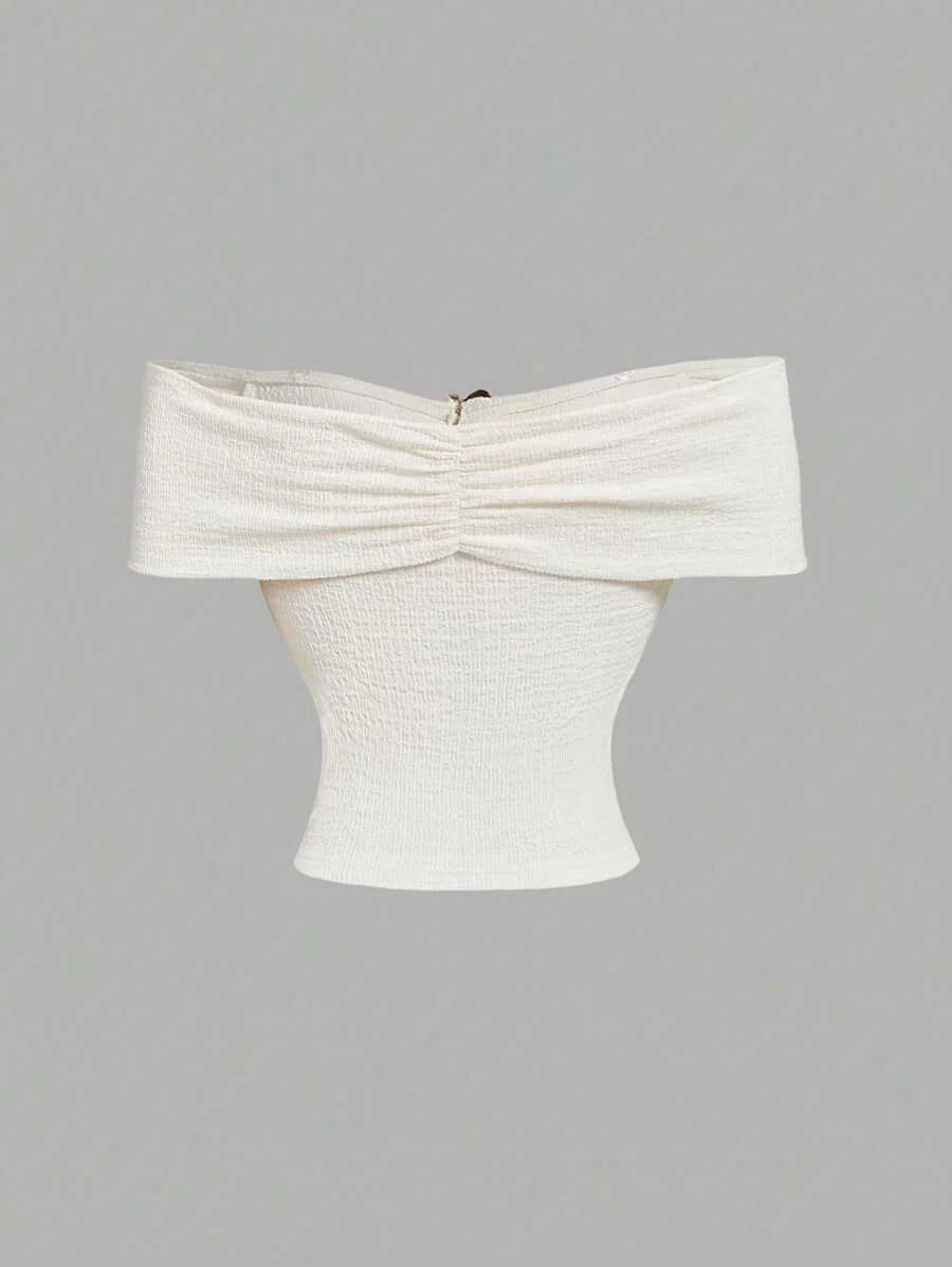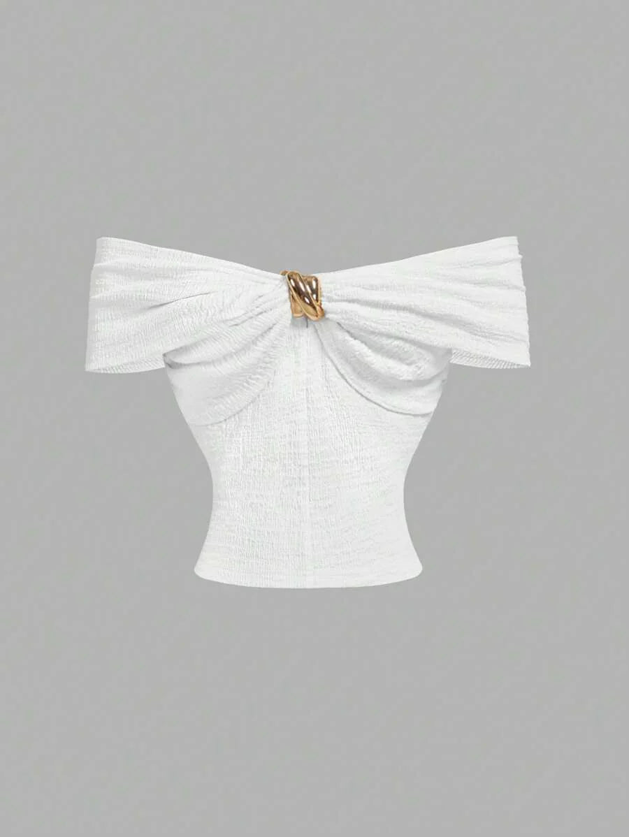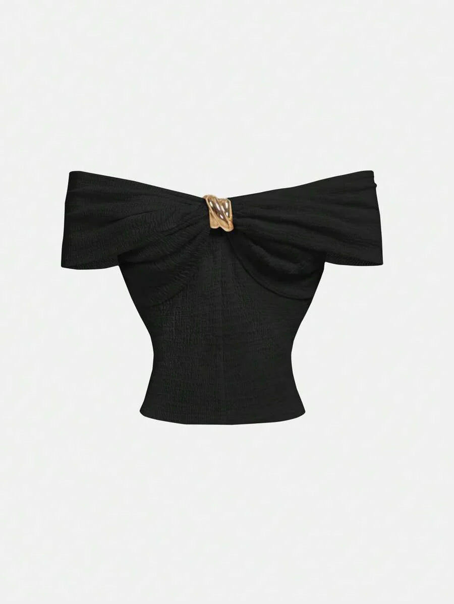 Çapraz Jakarlı Omuz Açık Örgü Üst