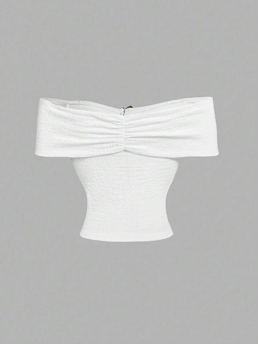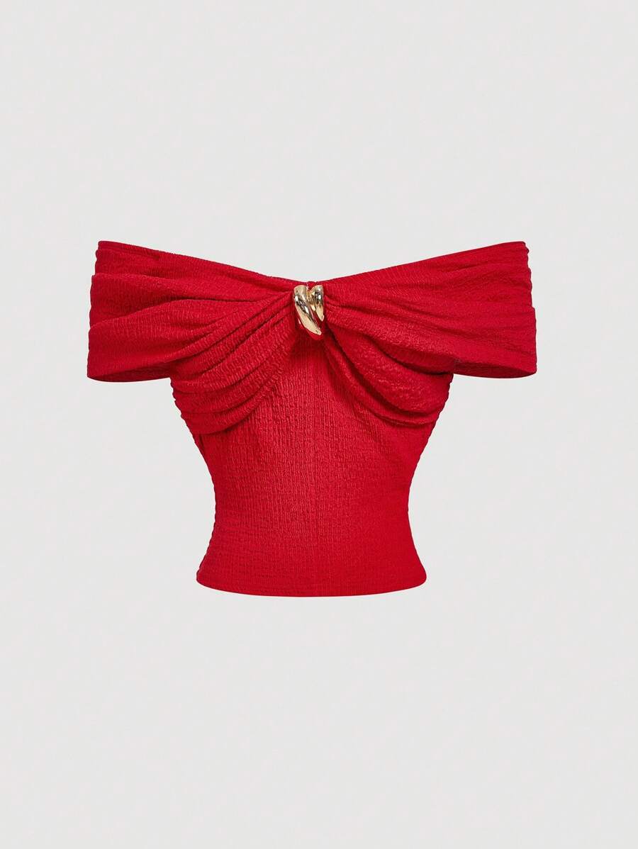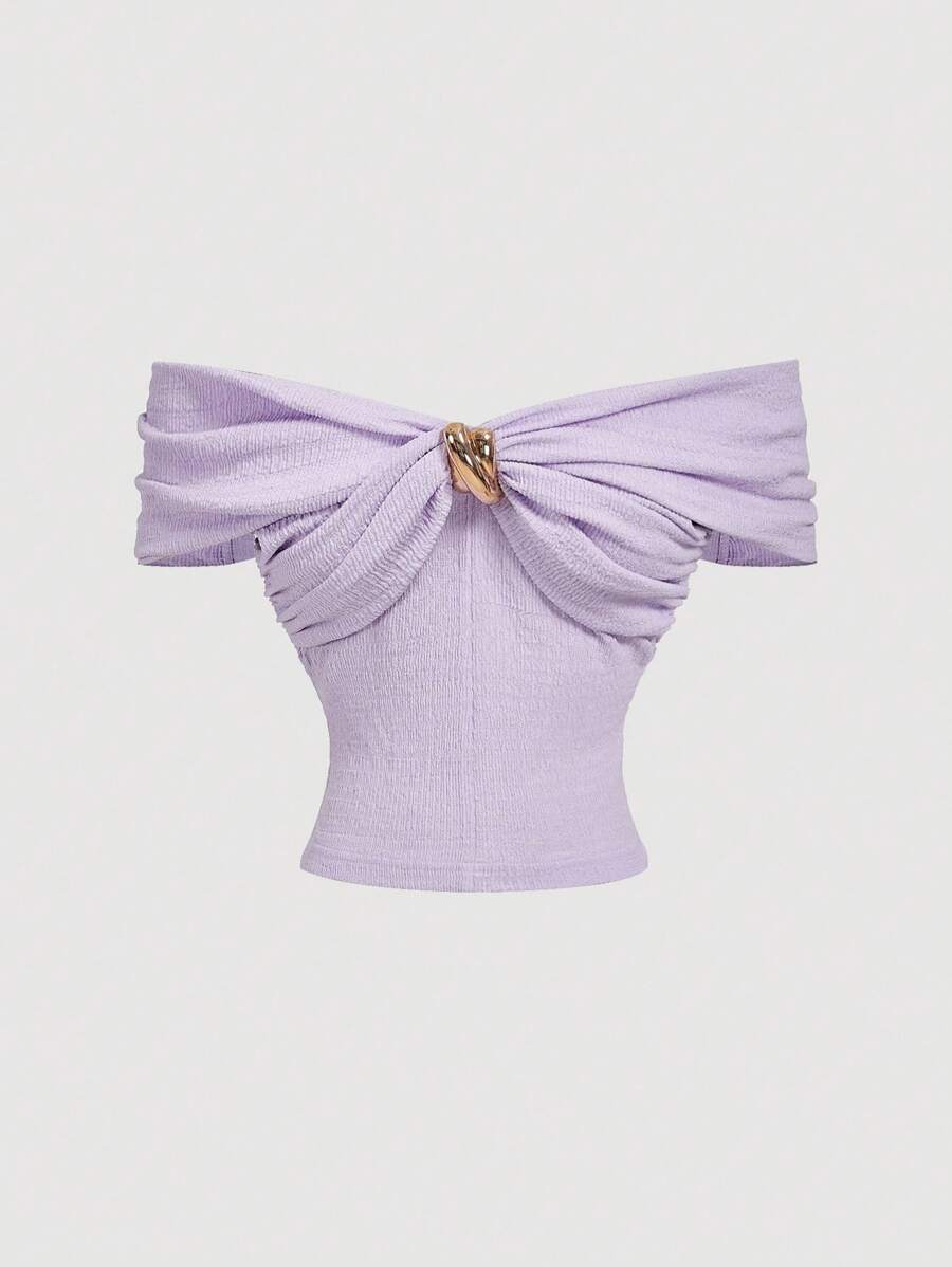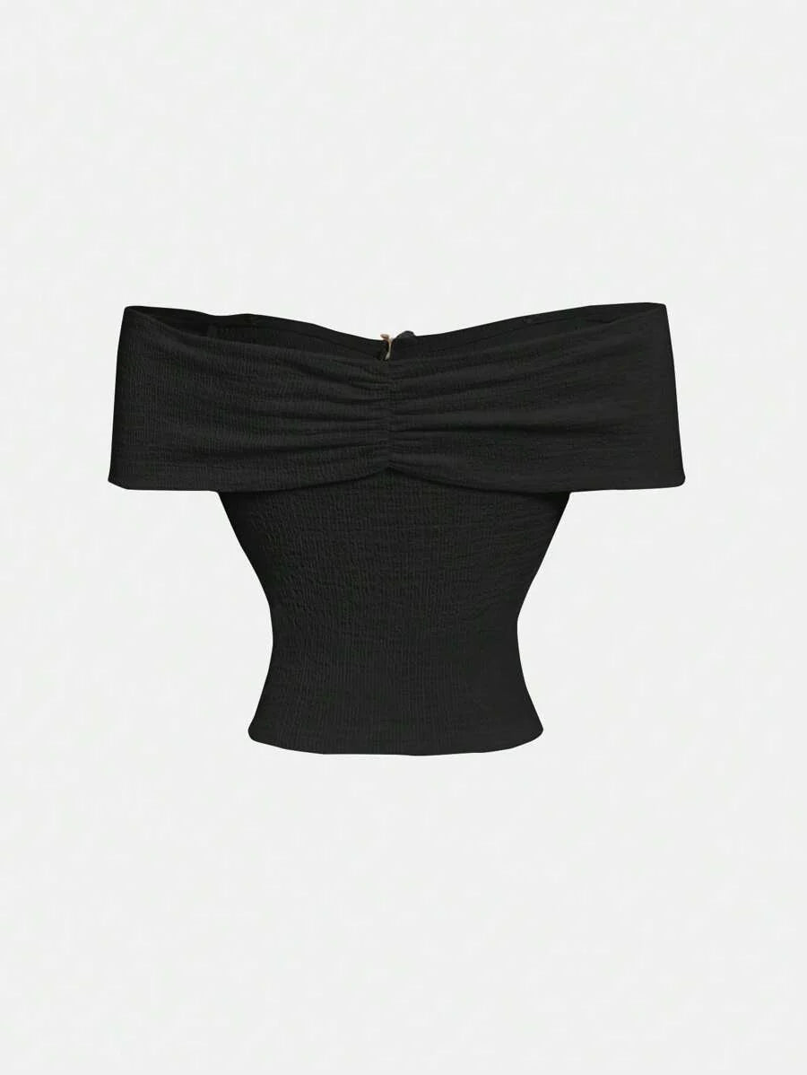 Çapraz Jakarlı Omuz Açık Örgü Üst