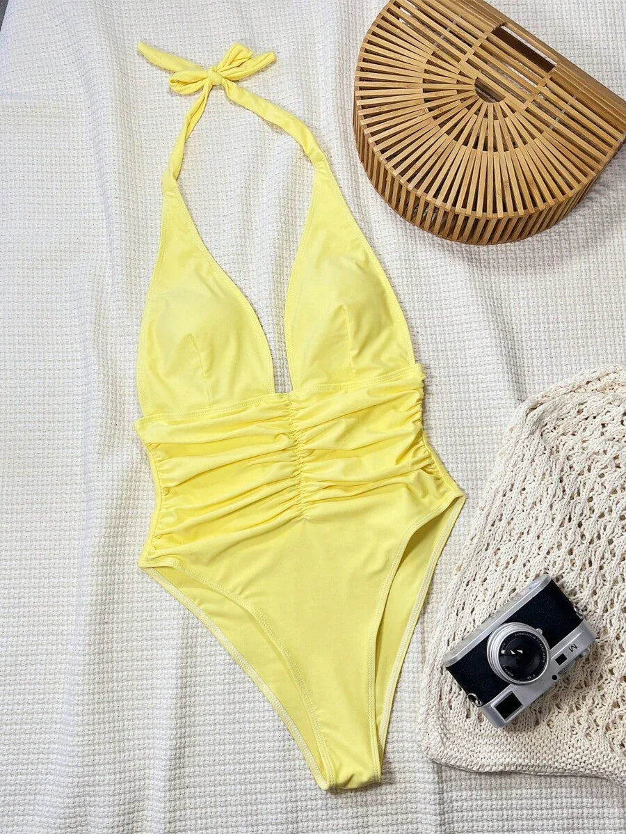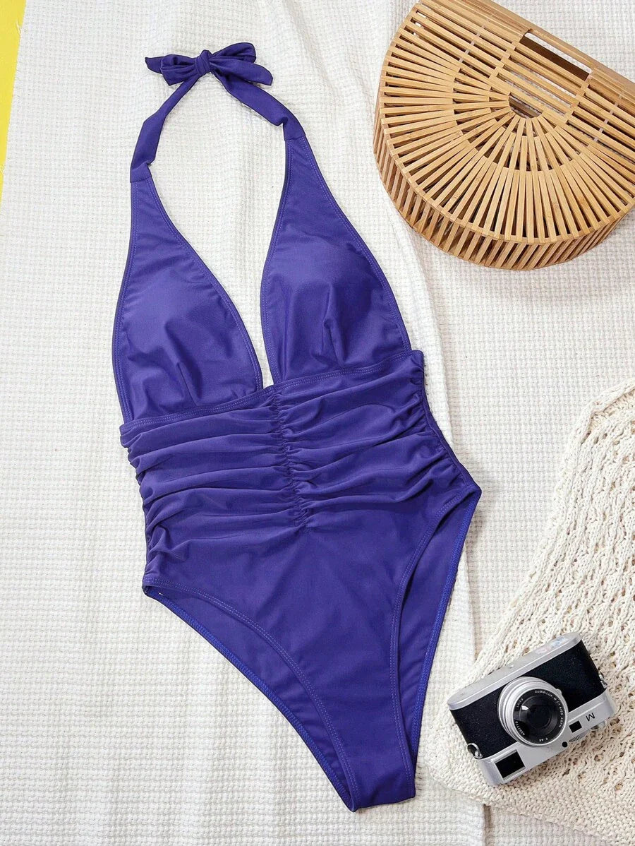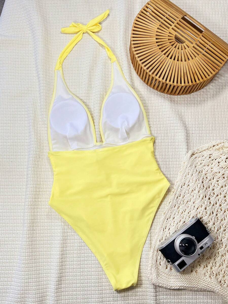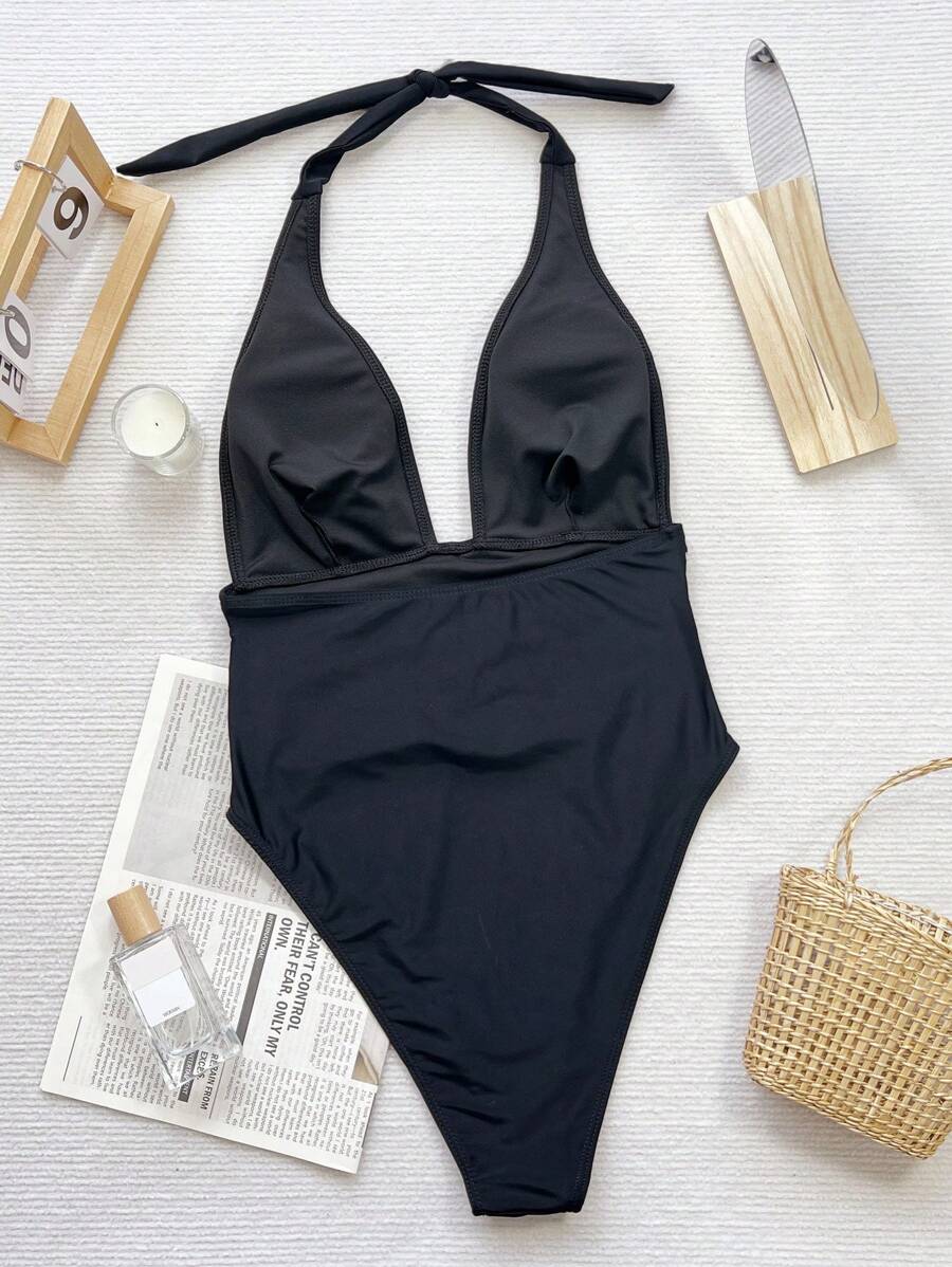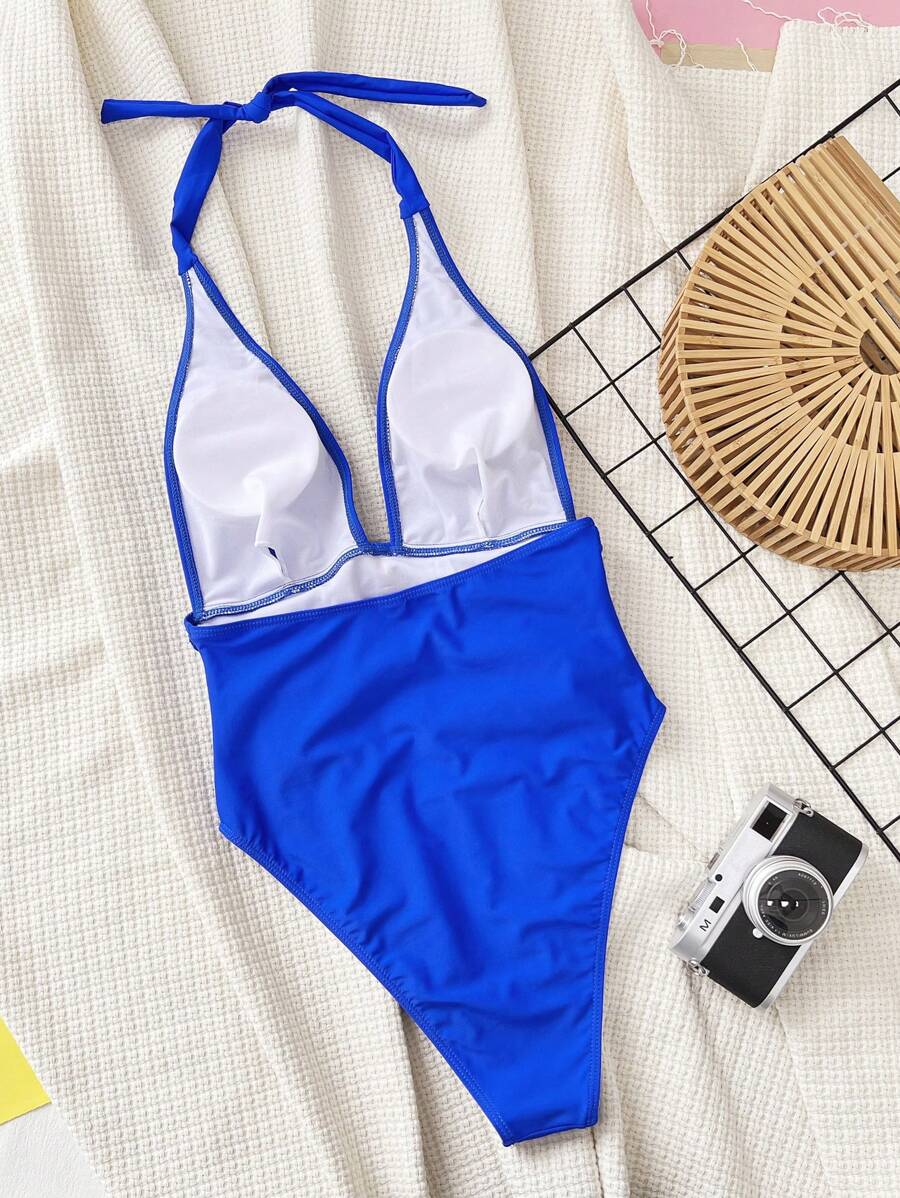 Halter Yaka Sade Tek Parça Mayo
