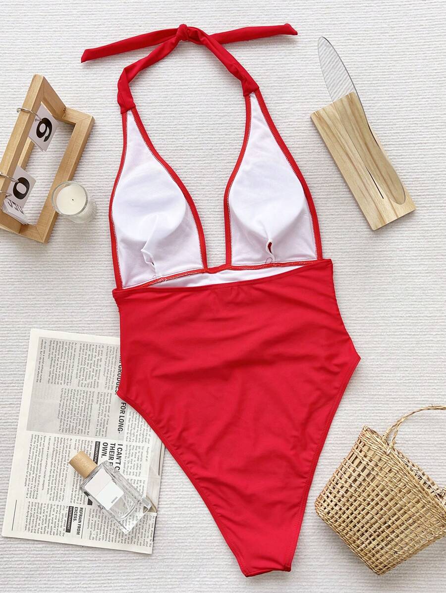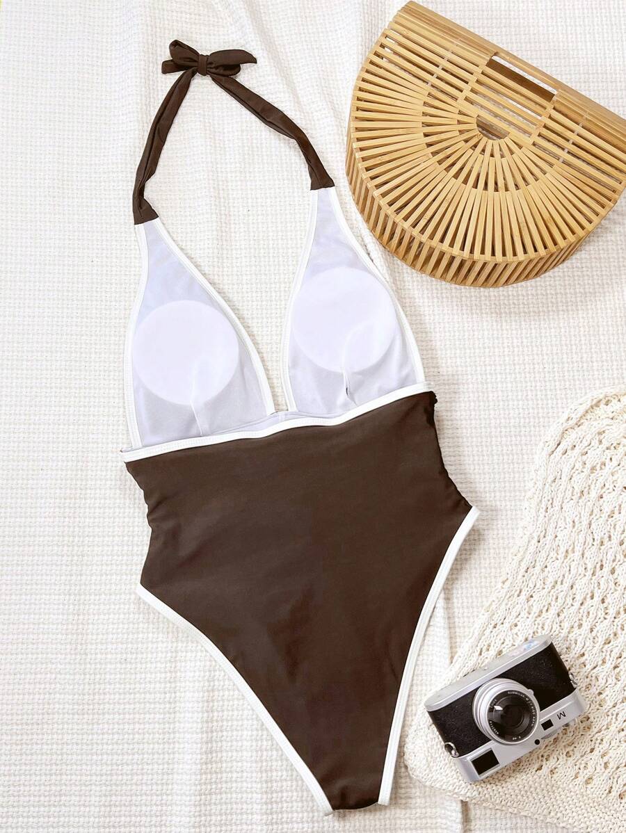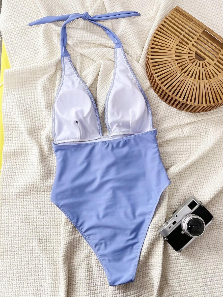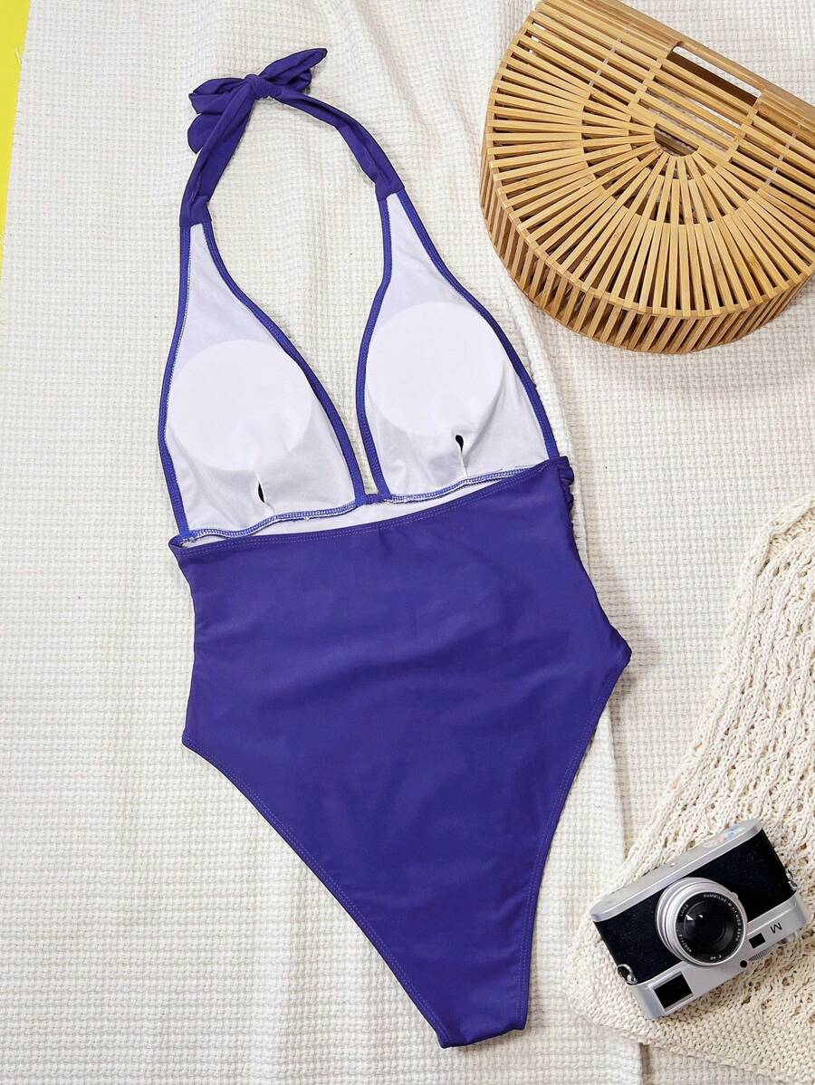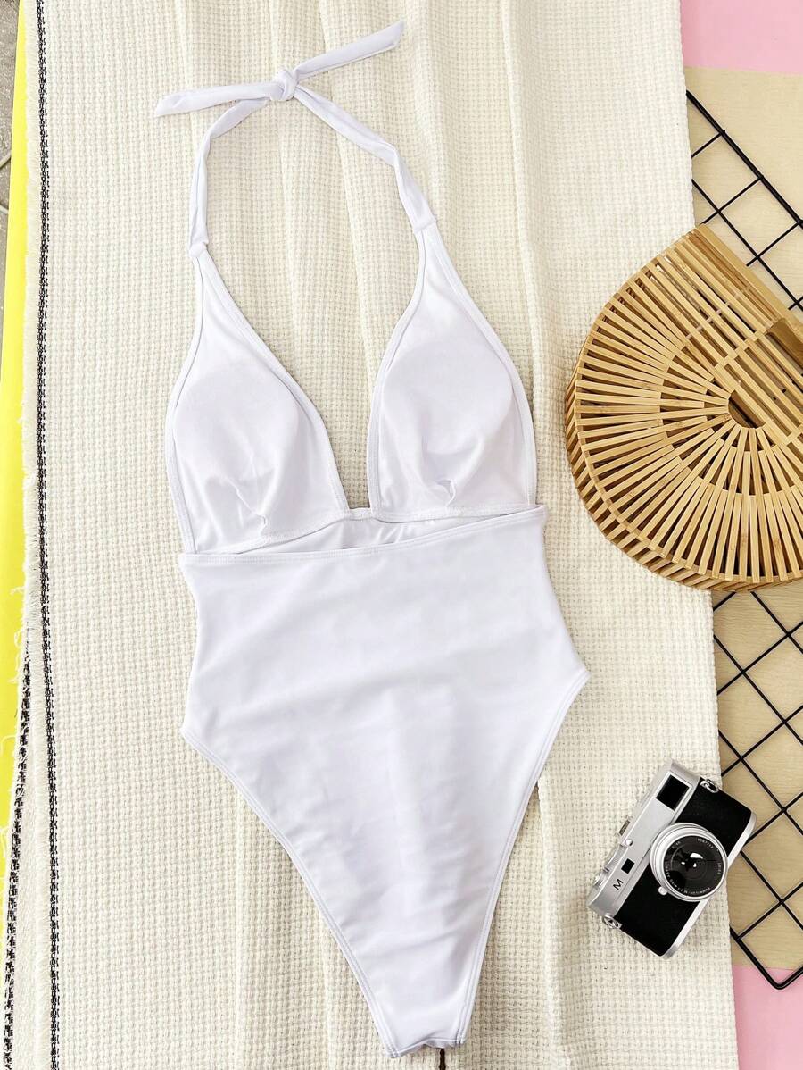 Halter Yaka Sade Tek Parça Mayo
