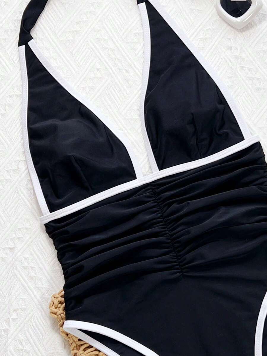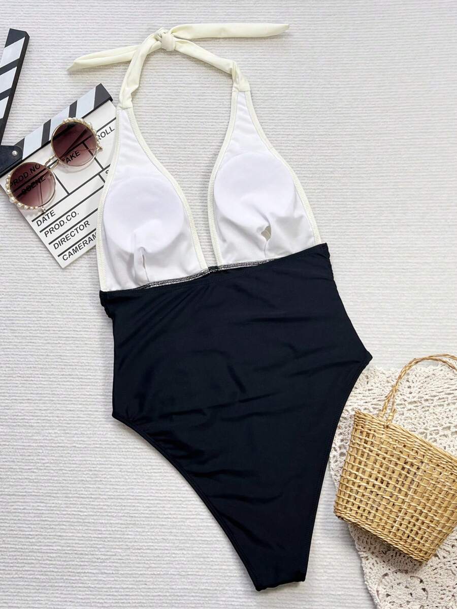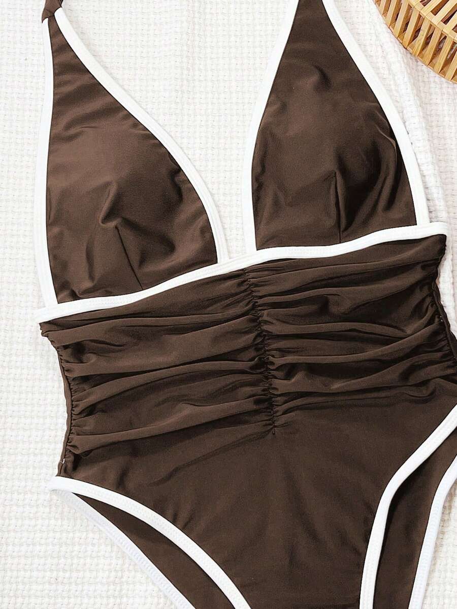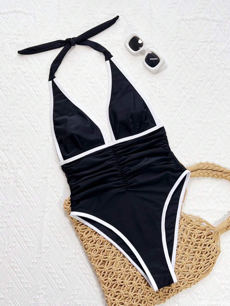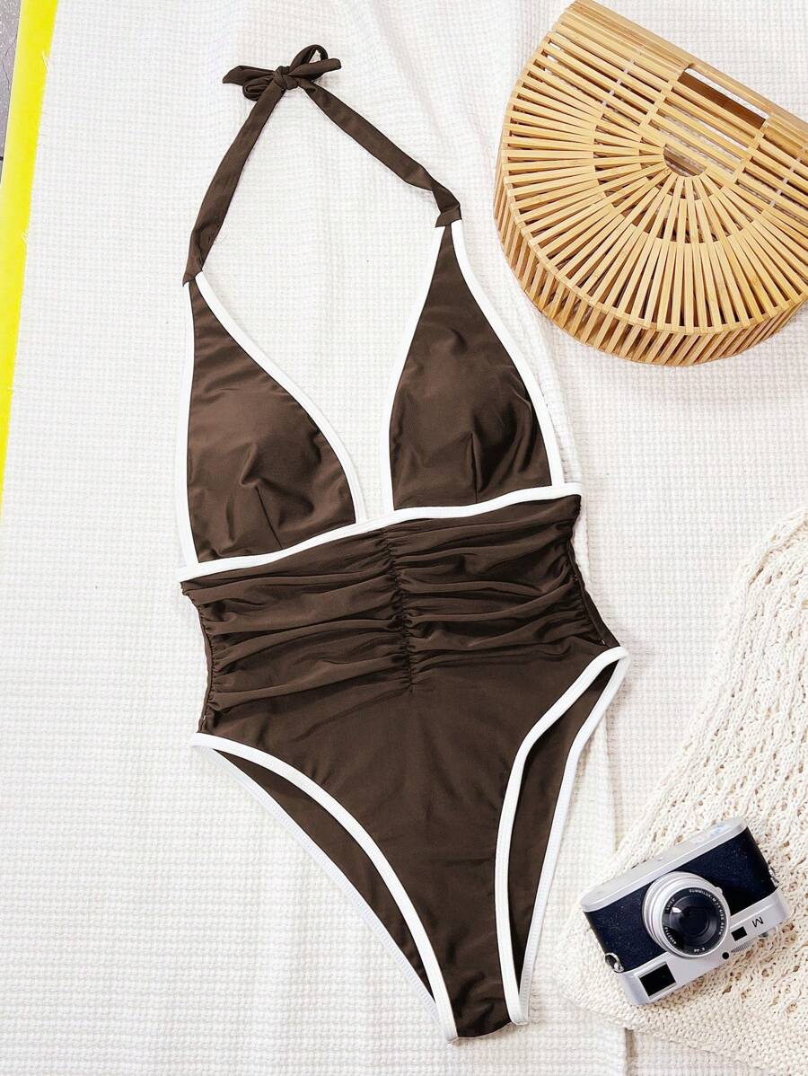 Halter Yaka Sade Tek Parça Mayo