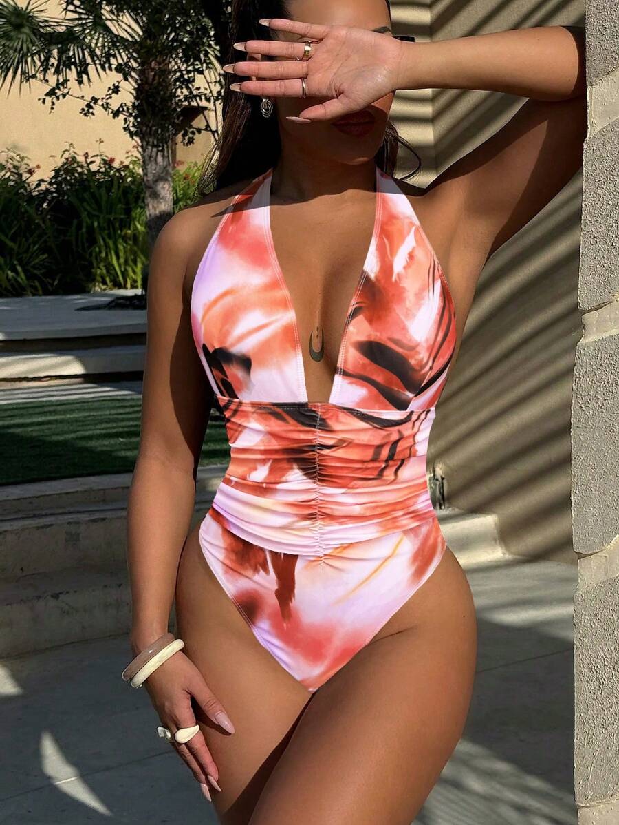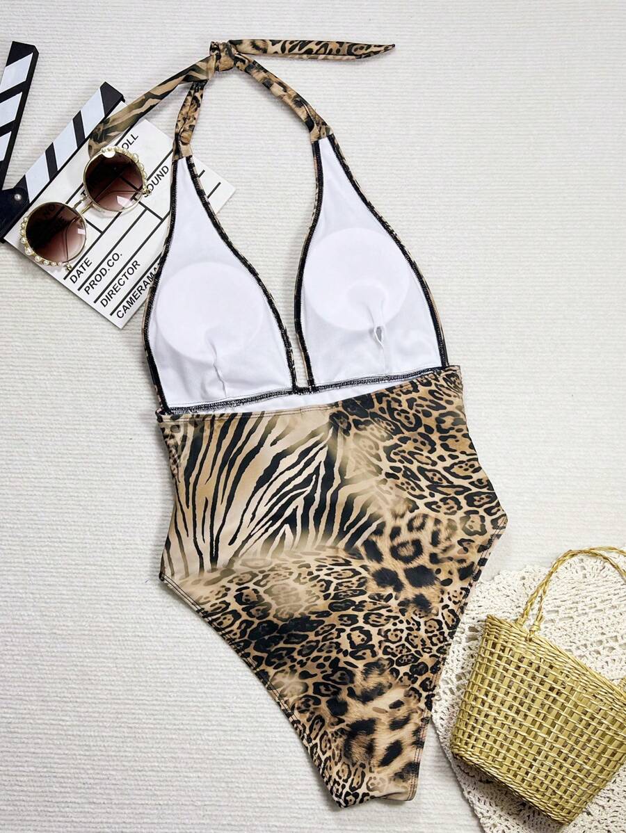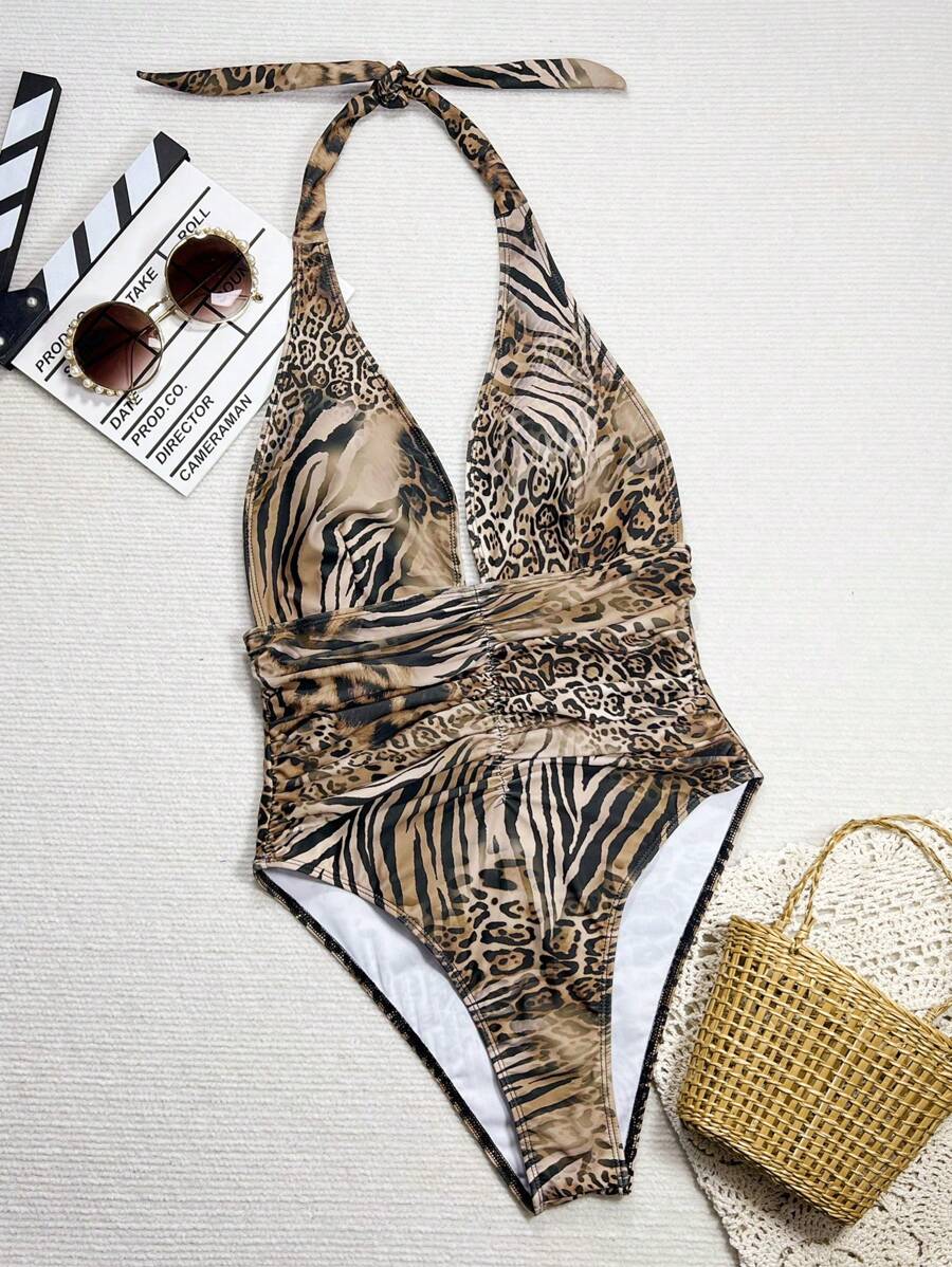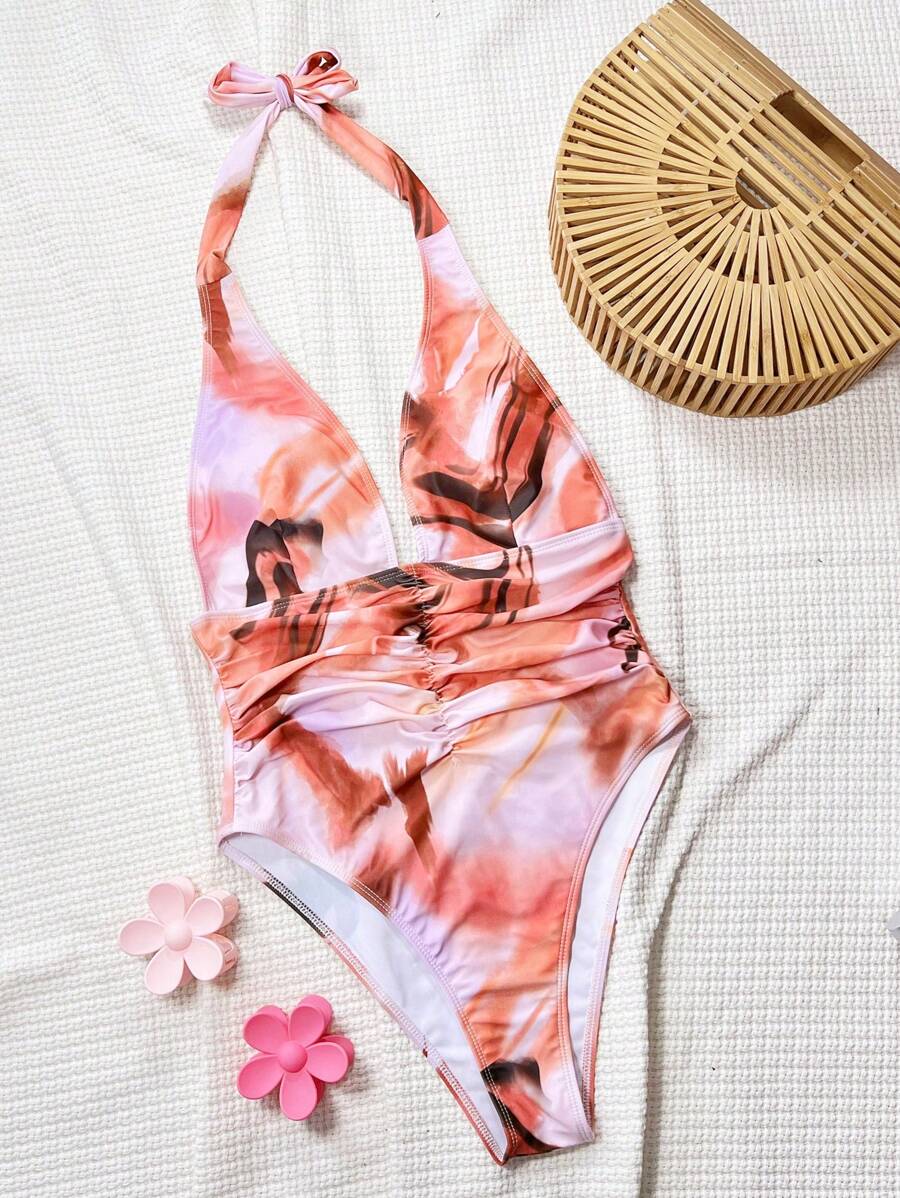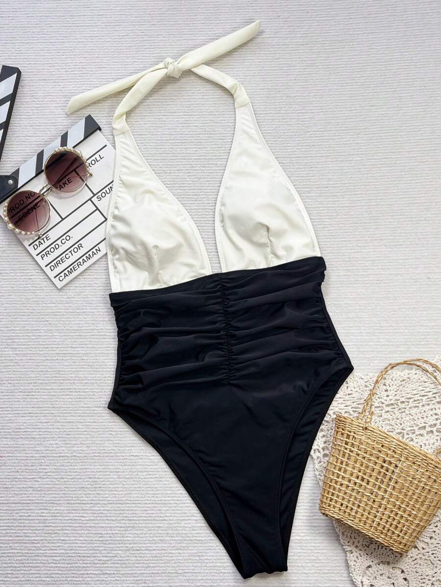 Halter Yaka Sade Tek Parça Mayo