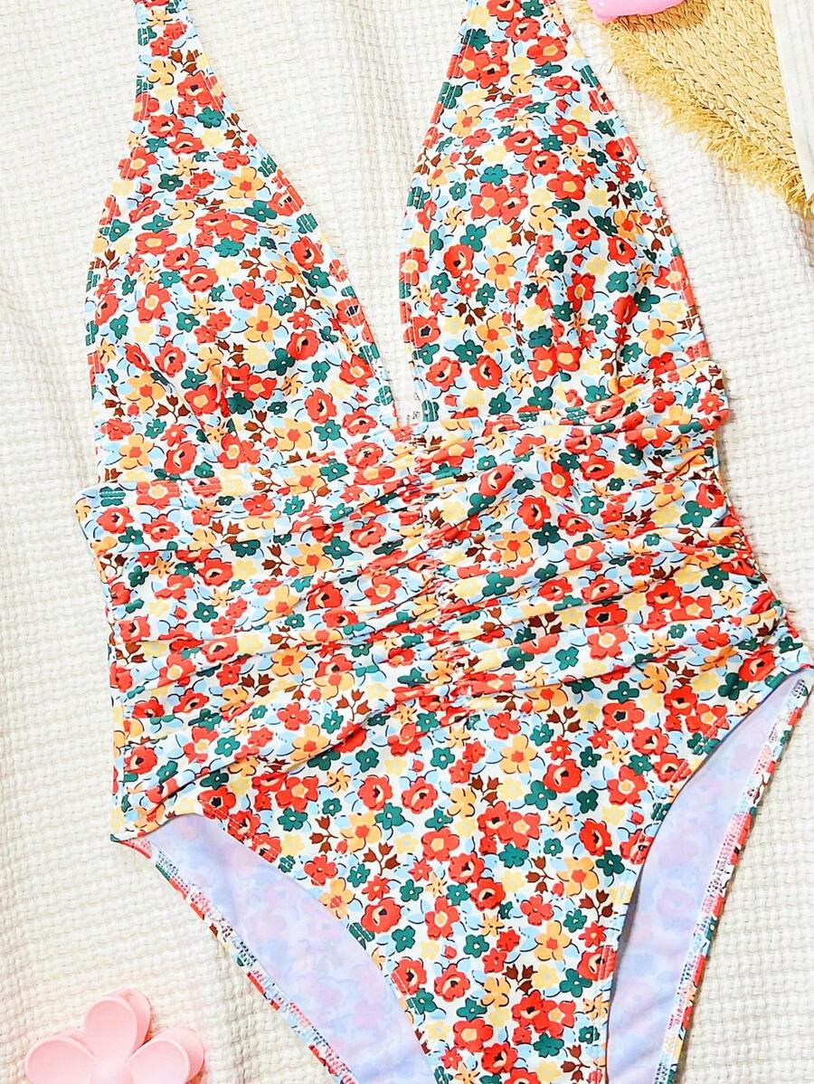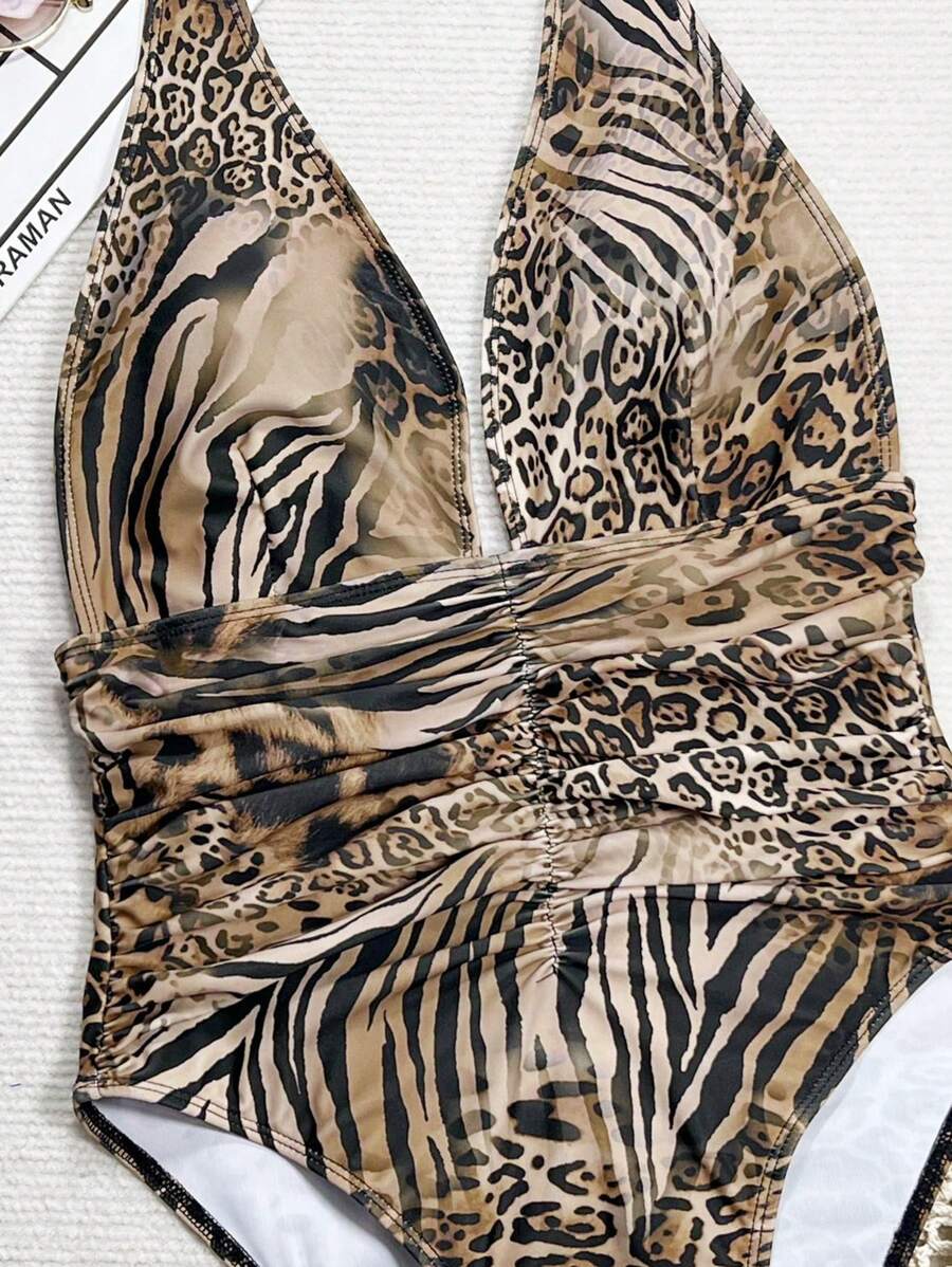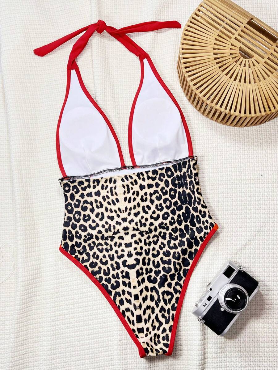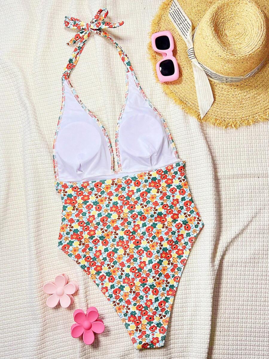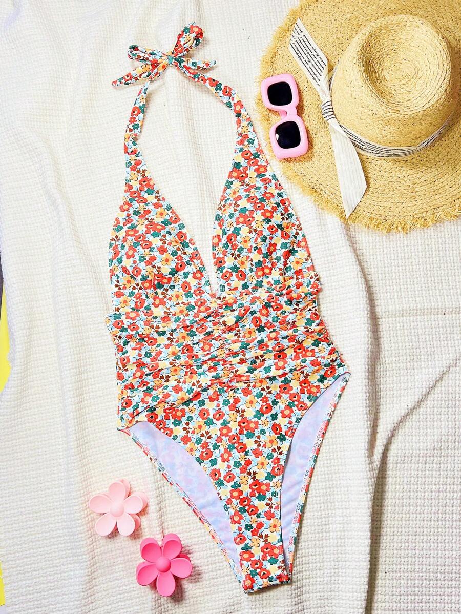 Halter Yaka Sade Tek Parça Mayo