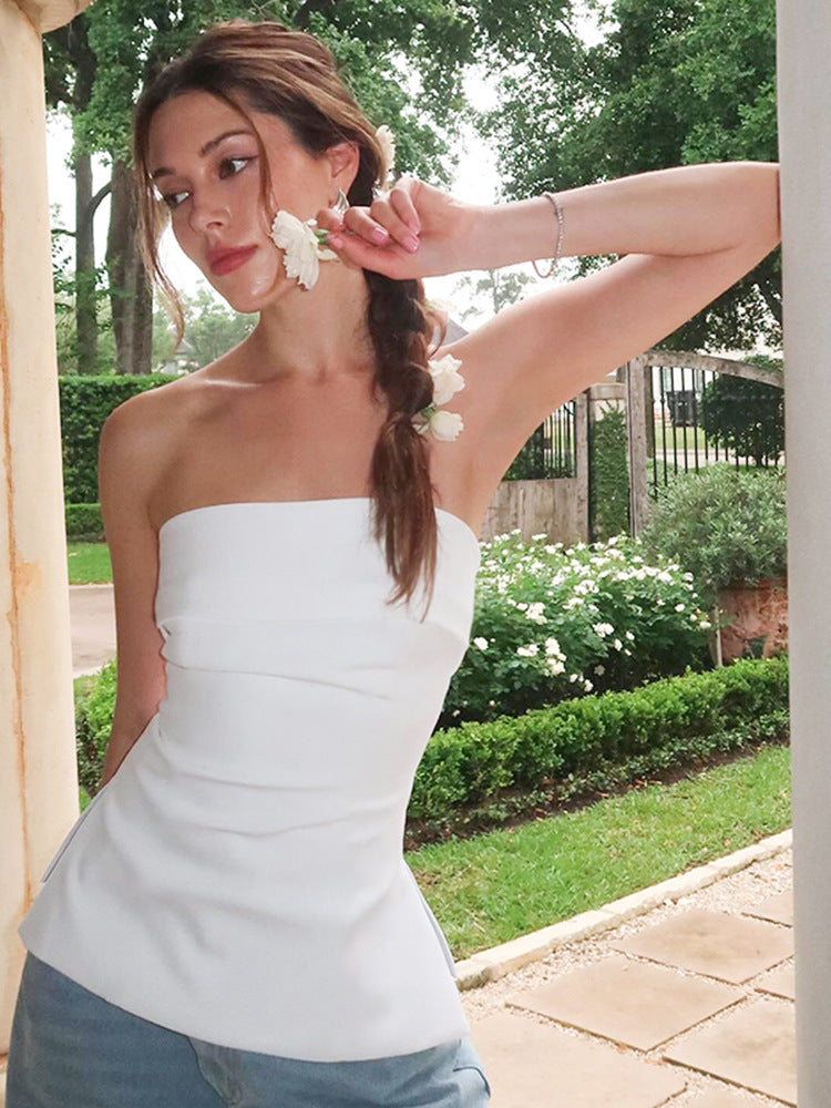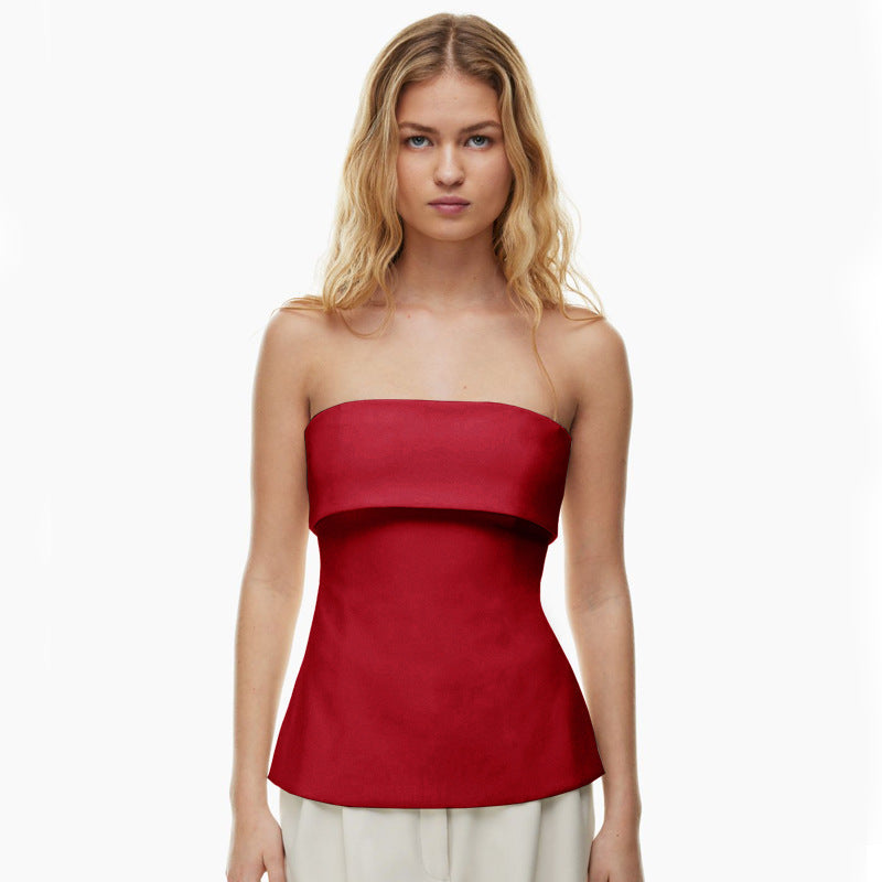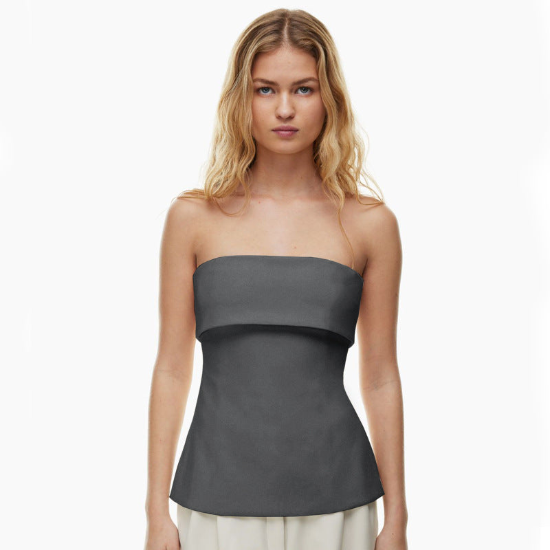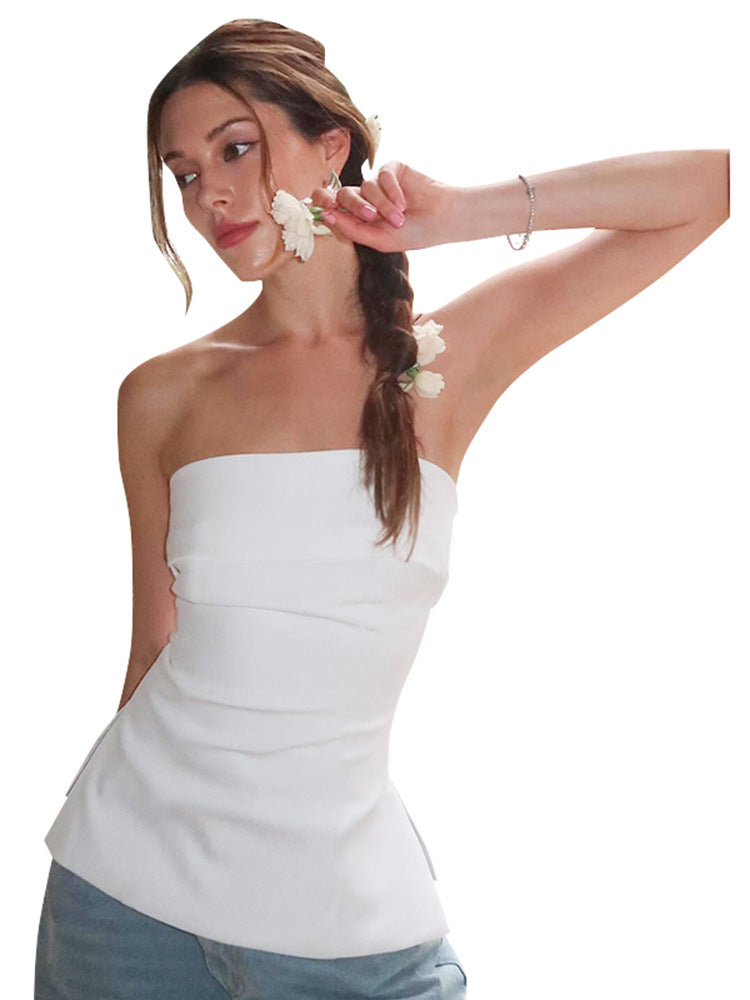 Sırtı Açık Geniş Yaka Yırtmaçlı Tüp Üst