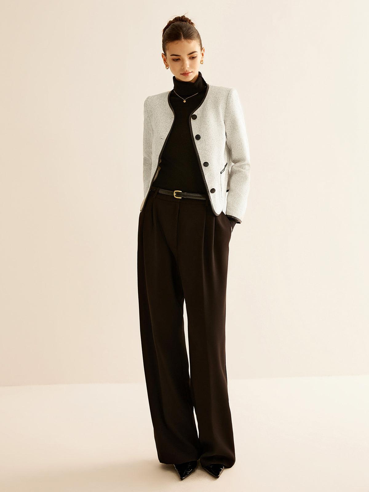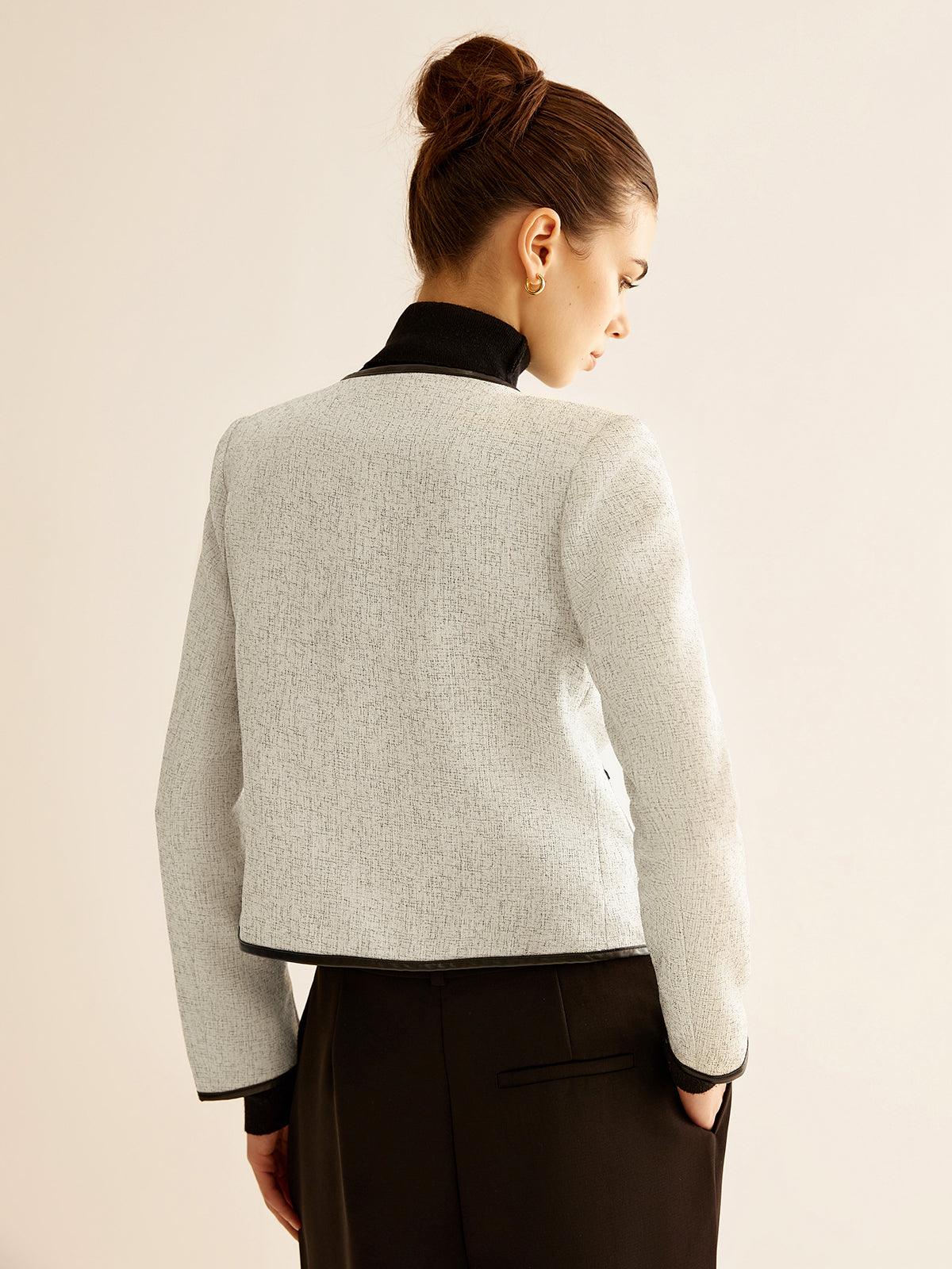 Siyah Detaylı Kısa Beyaz Blazer Ceket