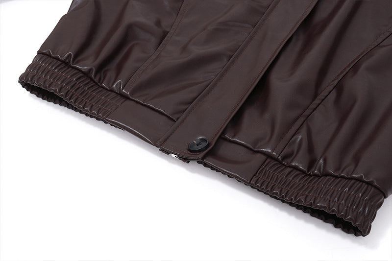 Cesur ve modern bir görünüm sunan Kahverengi Deri Crop Ceket, parlak dokusu ve kısa kesimiyle dikkat çekiyor. Fermuarlı ön tasarımı ve geniş yaka detayıyla sokak stiline güçlü bir hava katar. Jean, mini etek veya elbiselerle kombinlenerek hem gündüz hem de gece şıklığında kullanılabilir.