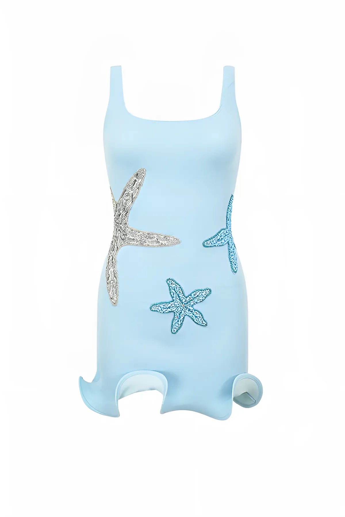 Deniz Yıldızı Süslü Yazlık Mini Elbise