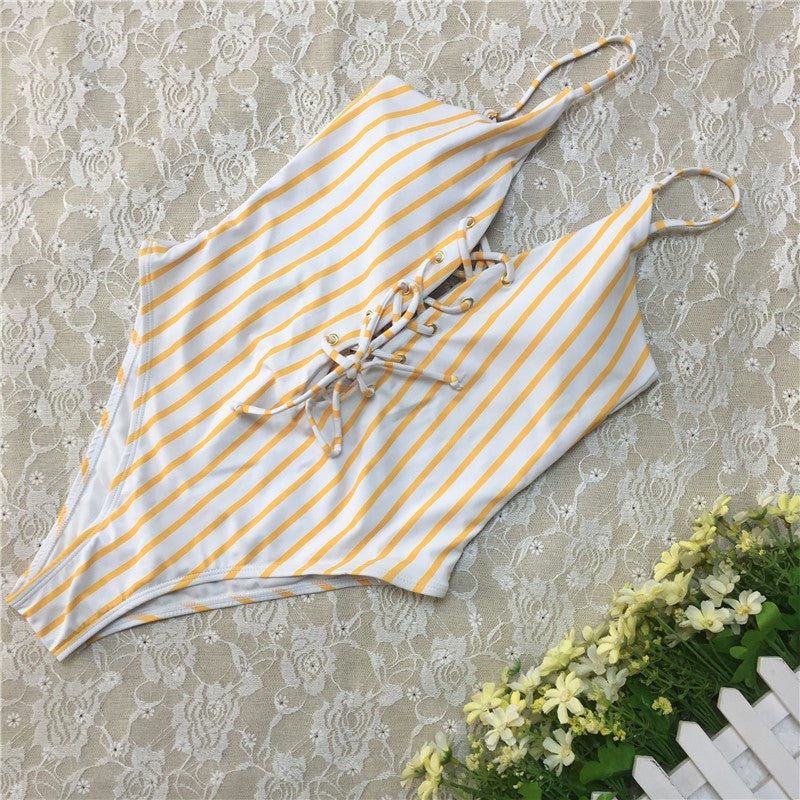 Çizgili Sarı Tek Parça Mayo