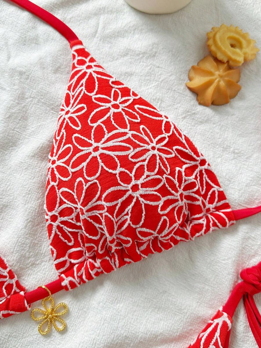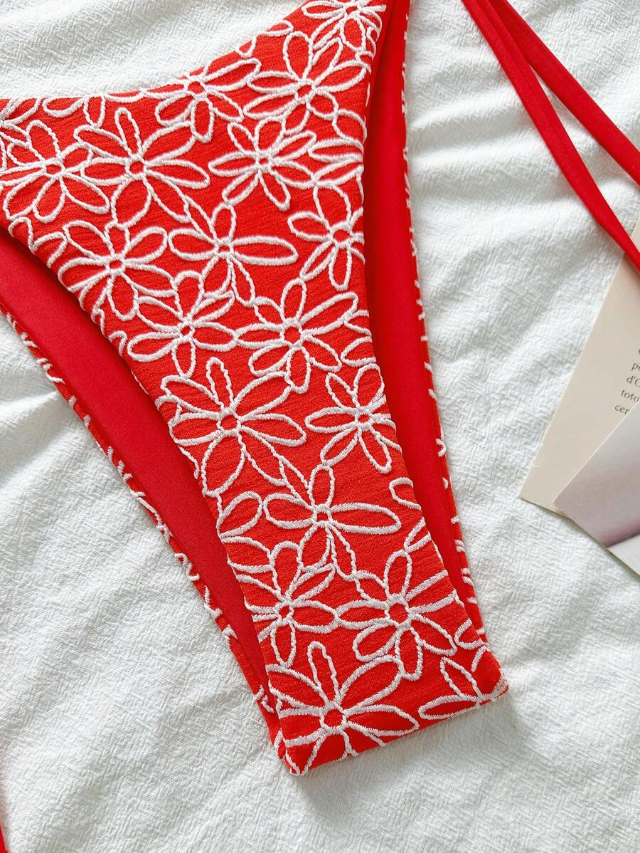 Çiçek Desenli Boyundan Bağlamalı Bikini Ve Bağcıklı Bikini Altı Takımı