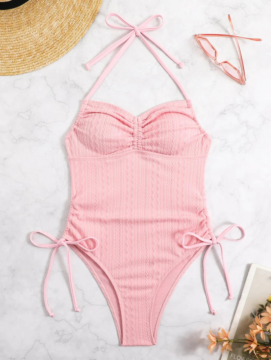 Dantelli Büzgülü Tek Parça Mayo