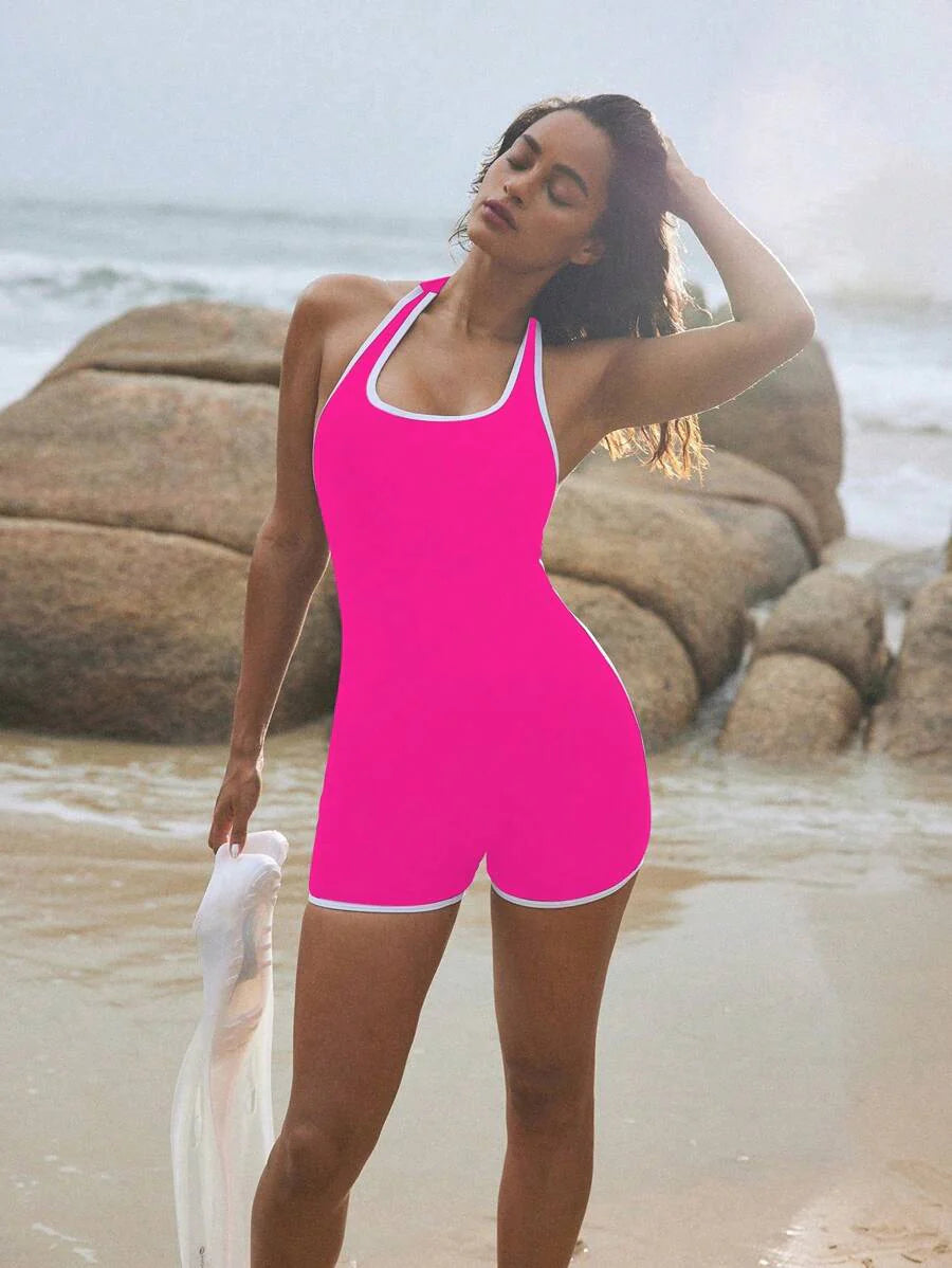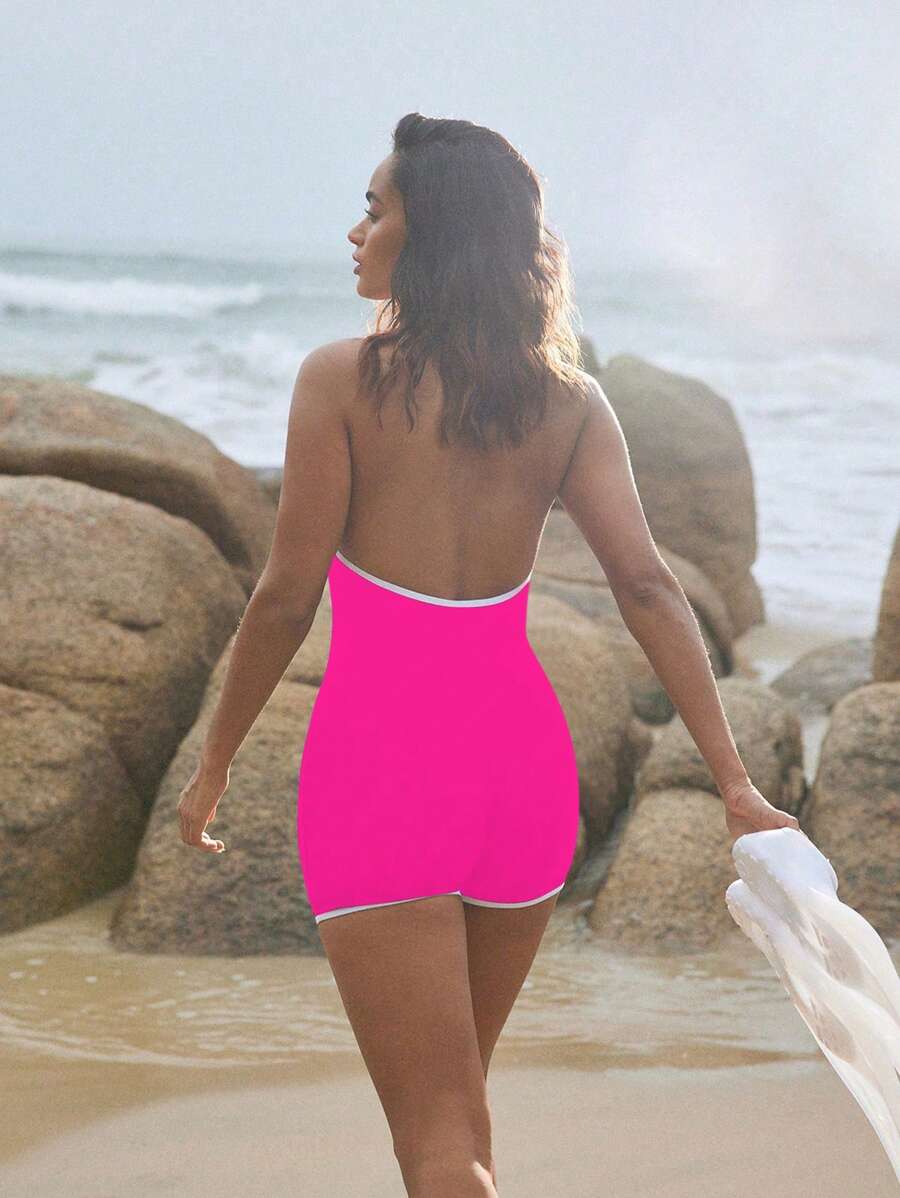 Halter Yaka Sırtı Açık Bağcıklı Tek Parça Mayo