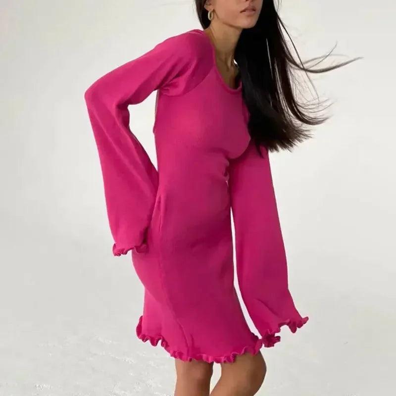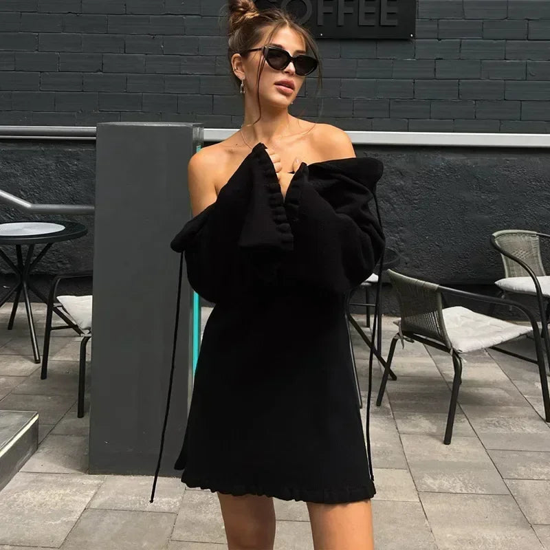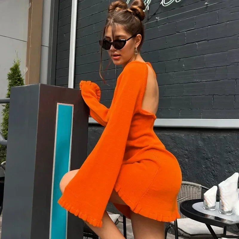 Sırt Detay Örme İspanyol Kol Mini Elbise