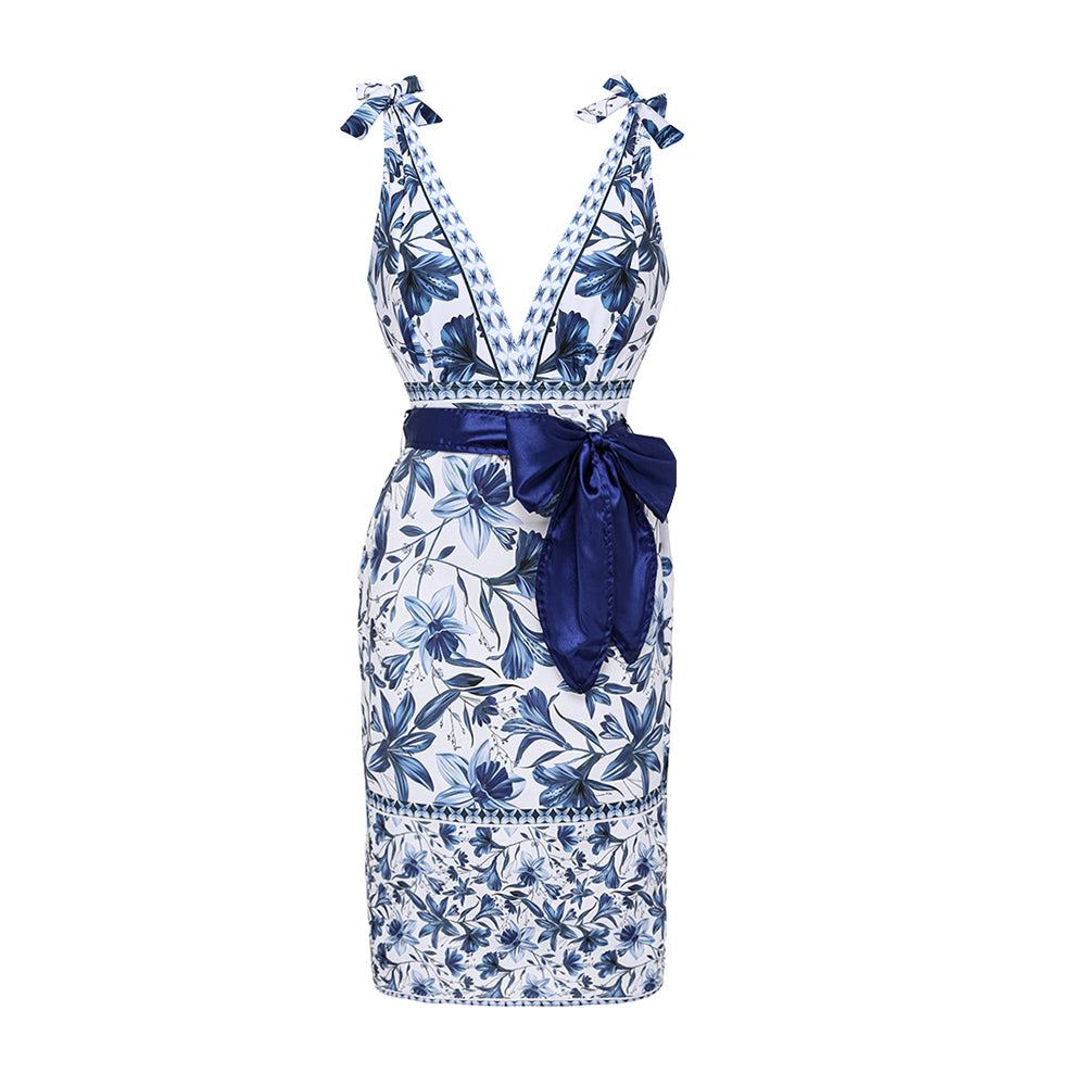 V Yaka Dantel Yukarı Baskılı Tek Parça Mayo-Pareo