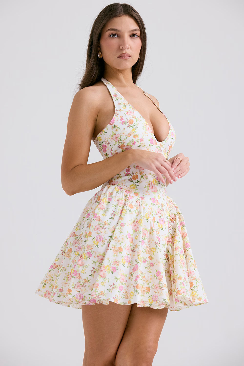 Valentia Fildişi Çayır Desenli Pamuklu Askılı Mini Elbise
