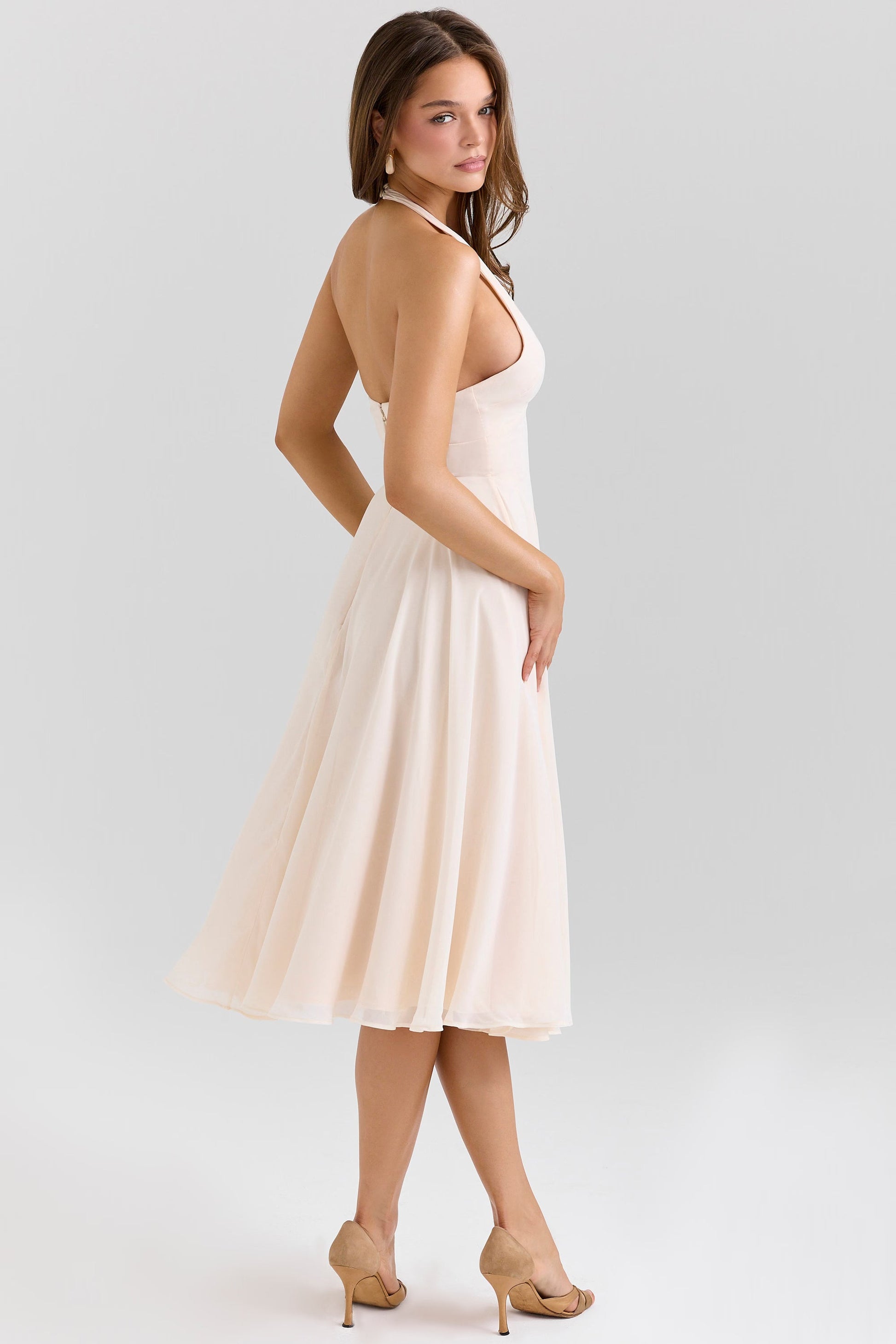 Vintage Georgette Boyundan Bağlamalı Midi Elbise