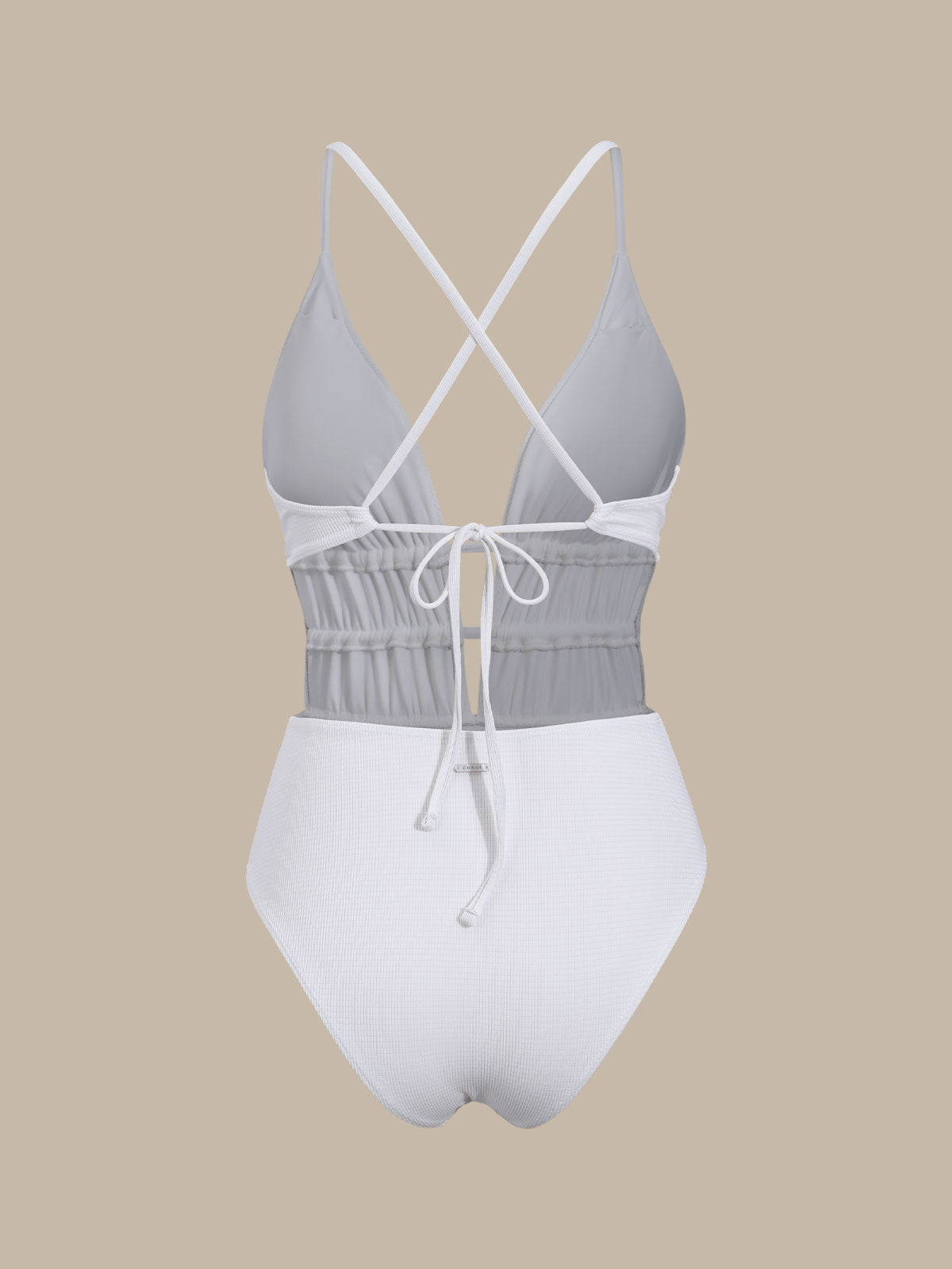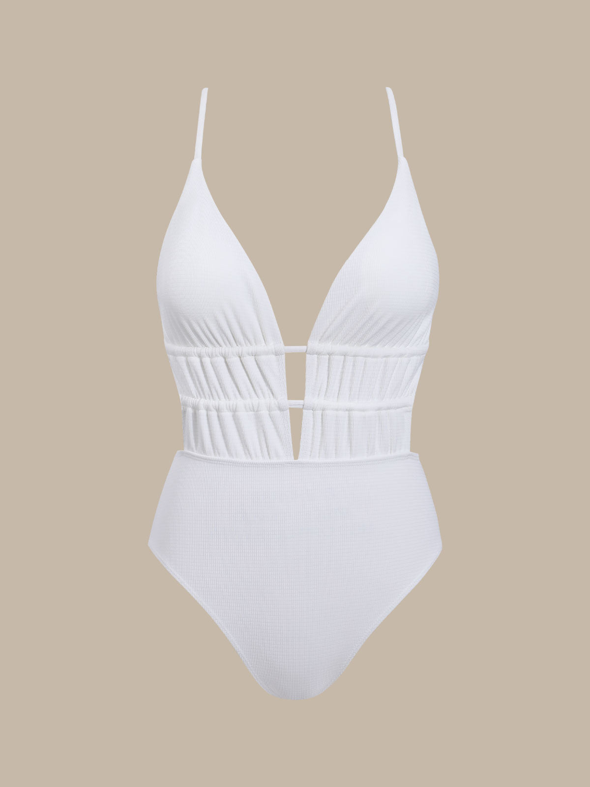 Beyaz Dokulu Dalma Tek Parça Mayo
