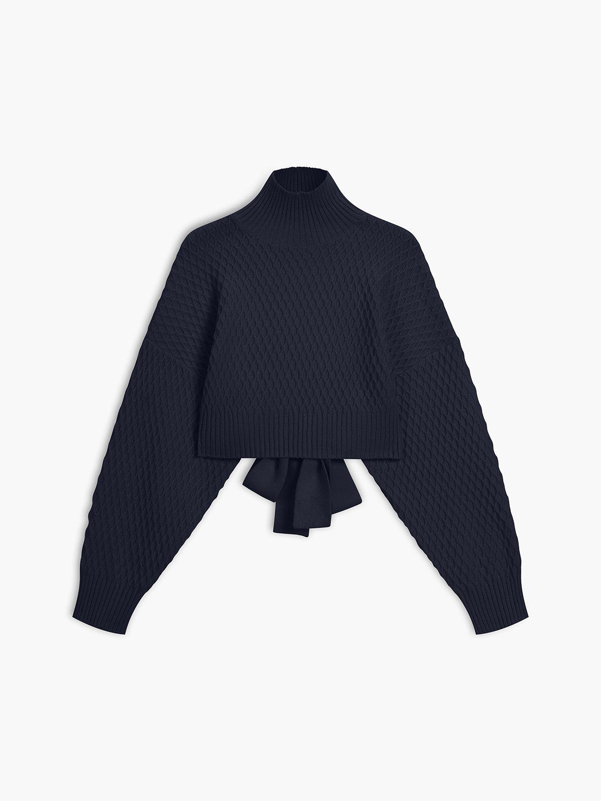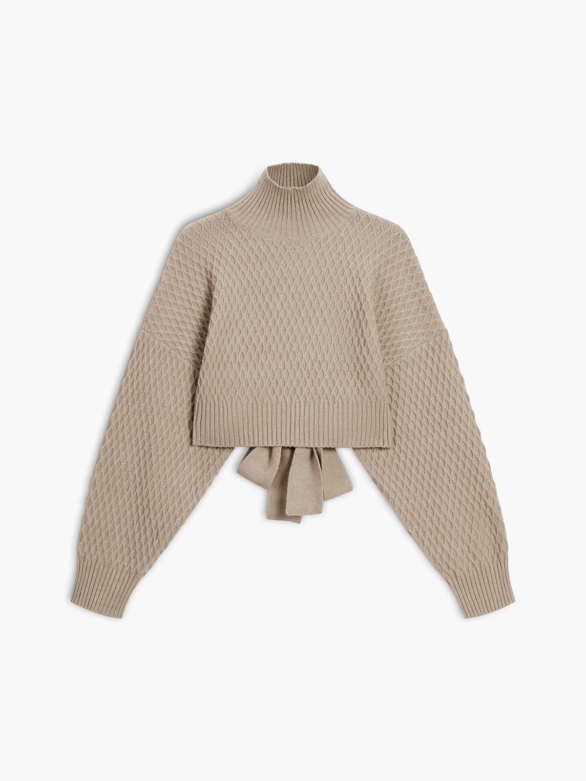 Günlük stilinize zarafet katan bu açık sırt detaylı dokulu kazak, hem konforu hem de şıklığı bir araya getiriyor. Sırtındaki bağcık detayıyla fark yaratırken, modern tasarımıyla stilinizi tamamlıyor. Hem özel günleriniz hem de günlük kombinleriniz için mükemmel bir tercih!