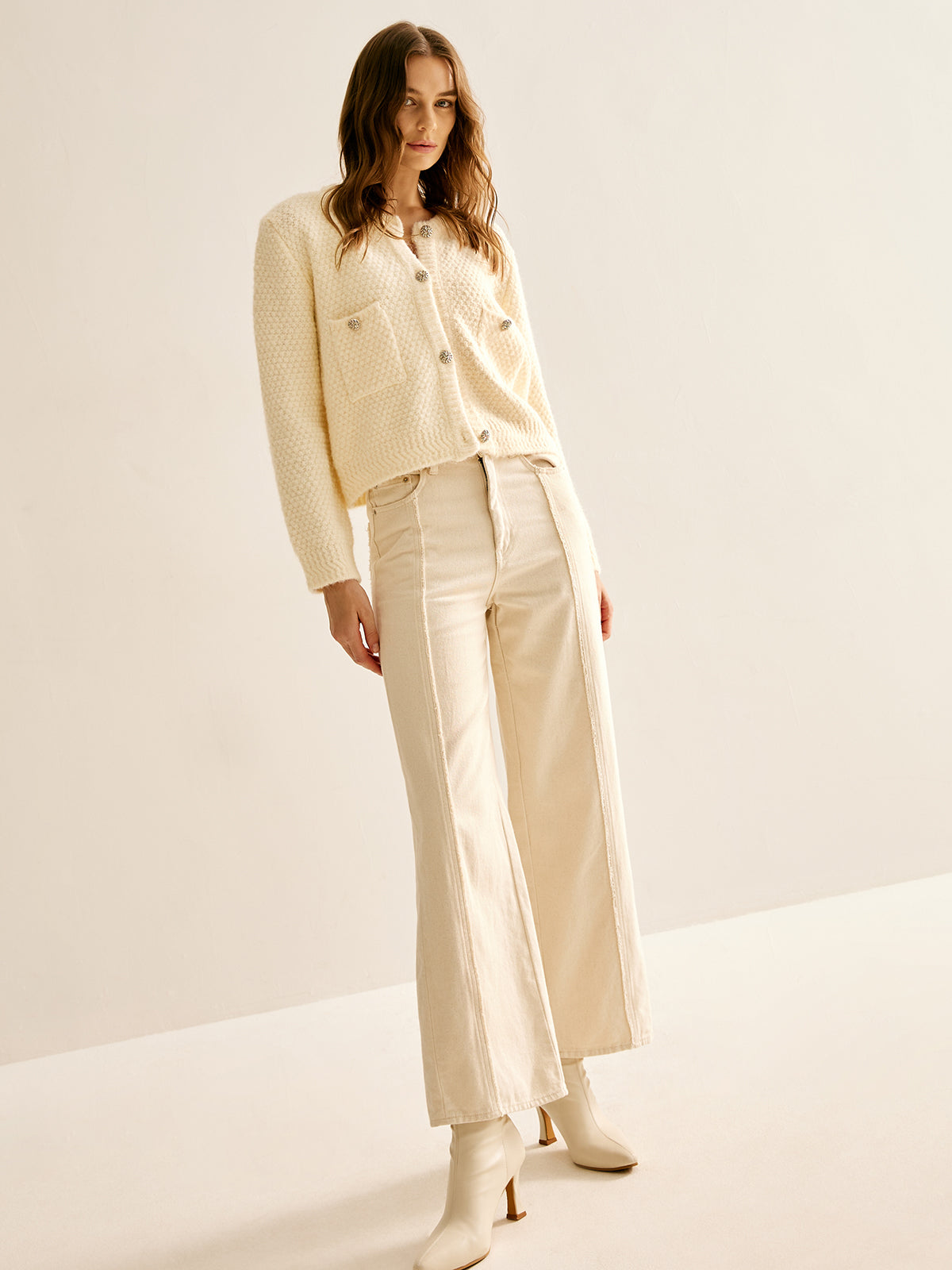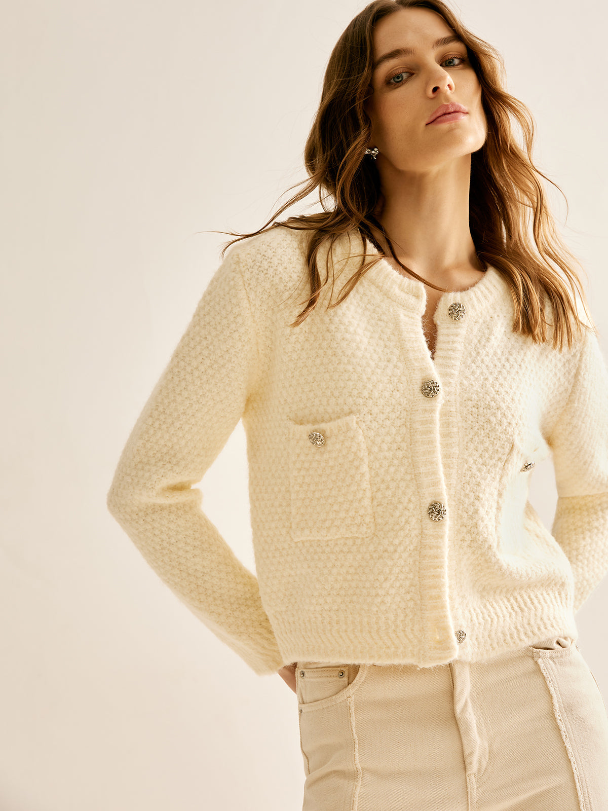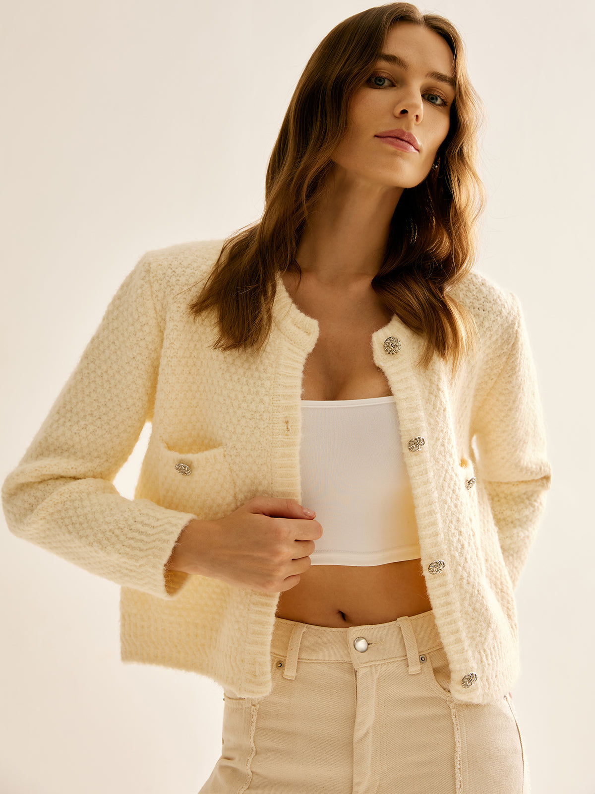 Modern dokunuşlarla yeniden yorumlanan bu örgü bolero, oversize formu ve yumuşak dokusuyla hem konfor hem de stil sunuyor. Esnek yapısı sayesinde hareket özgürlüğü sağlarken, salaş kesimi günlük kombinlere rahat bir şıklık katıyor. Minimal ama güçlü görünümüyle dolabın zamansız parçalarından biri olmaya aday.