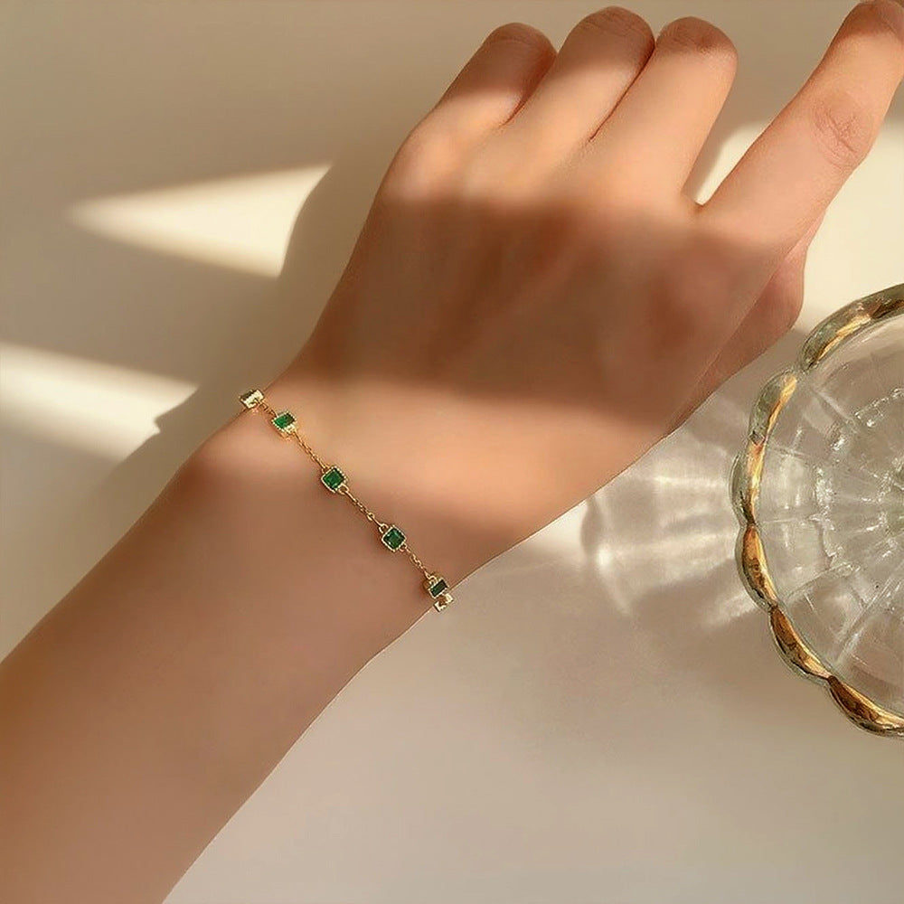 Zümrüt Taşlı 925 Ayar Gümüş Bileklik