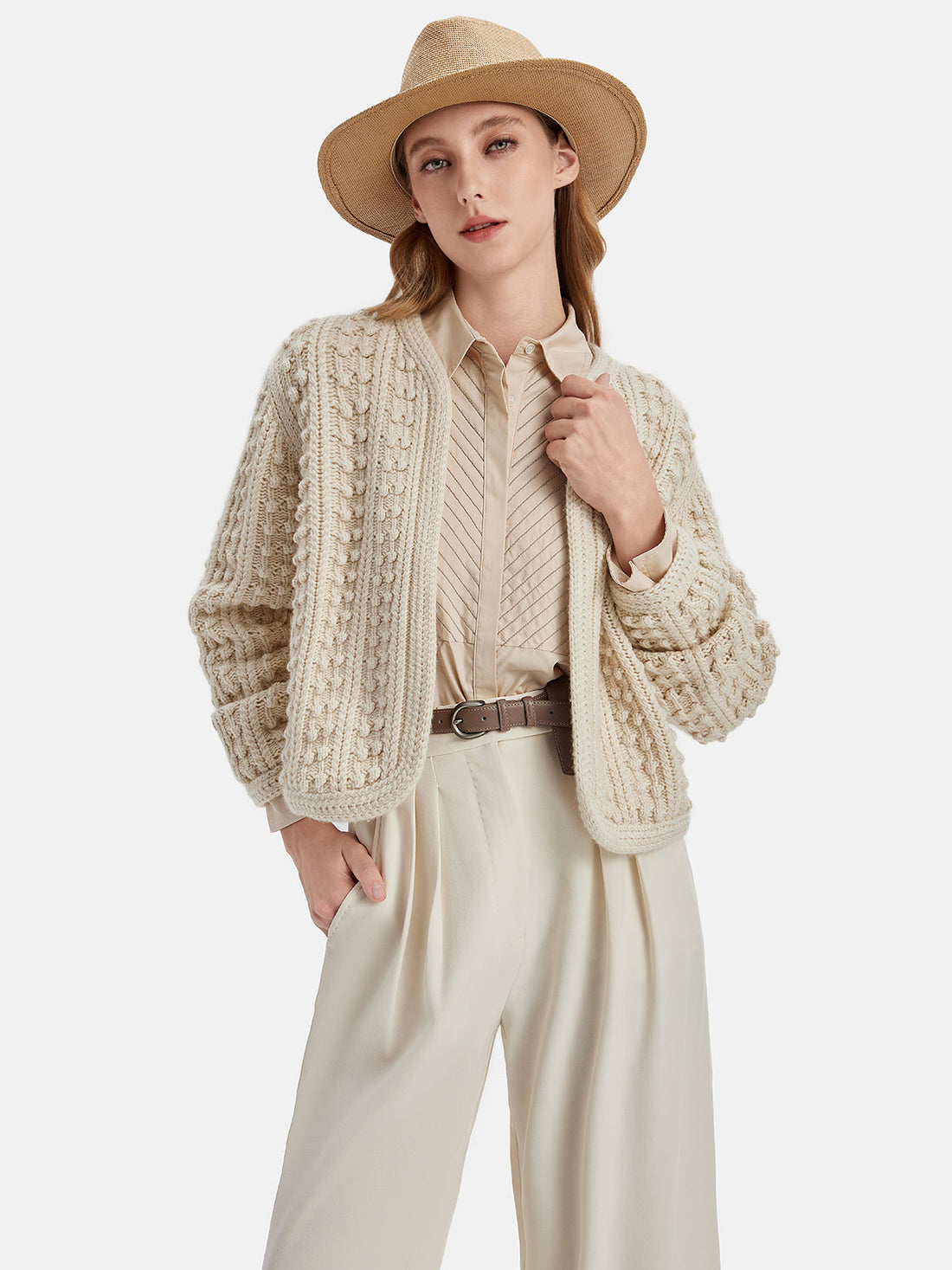 3D Kordon Nakışlı İpek Yün Kısa Ceket